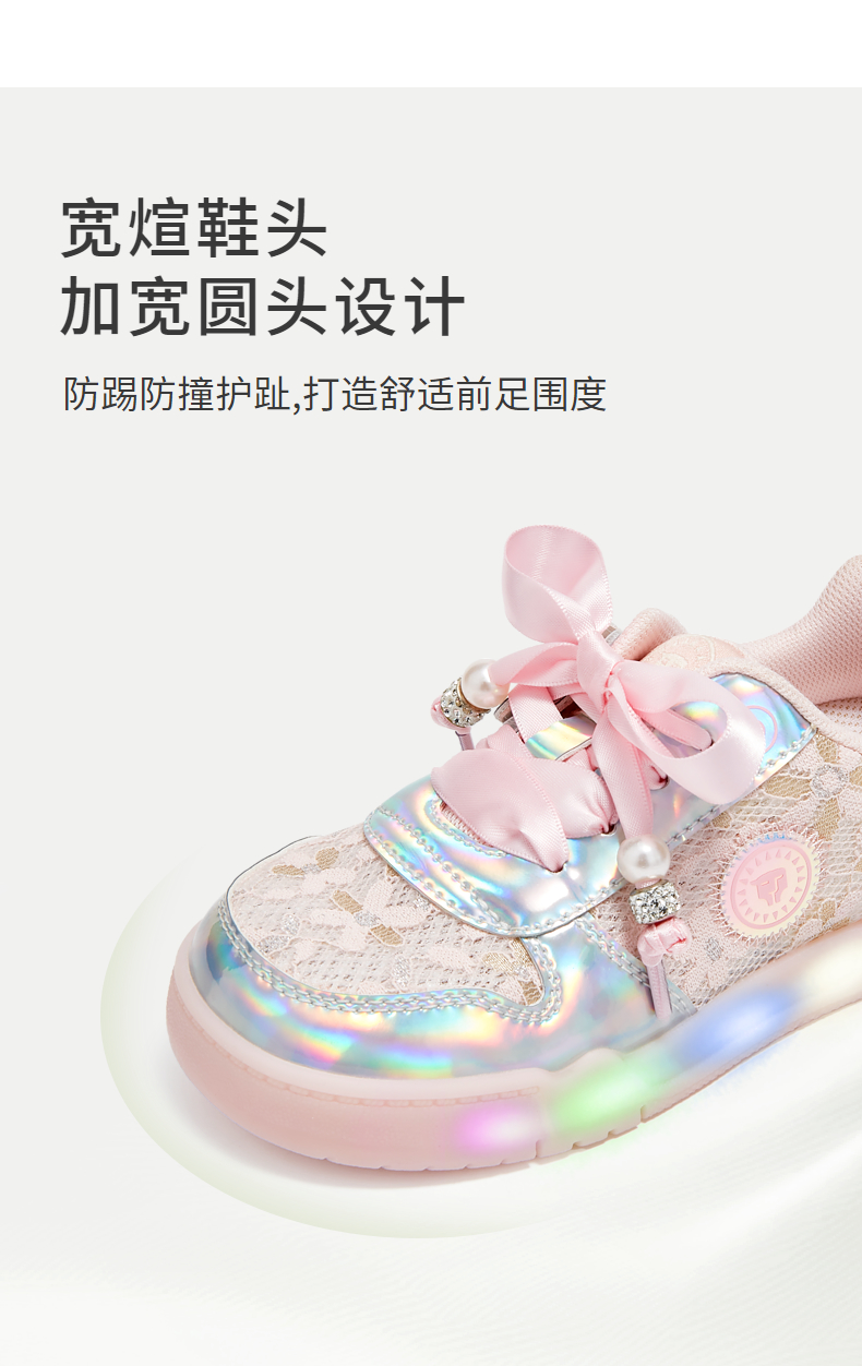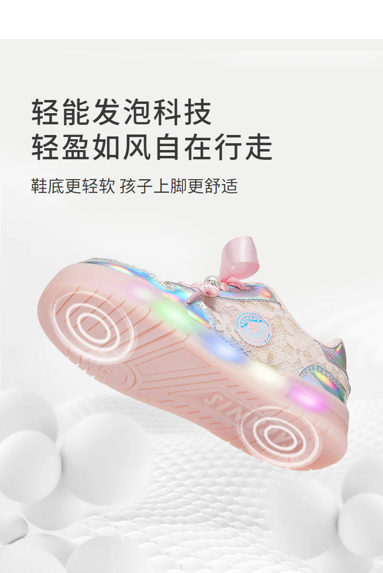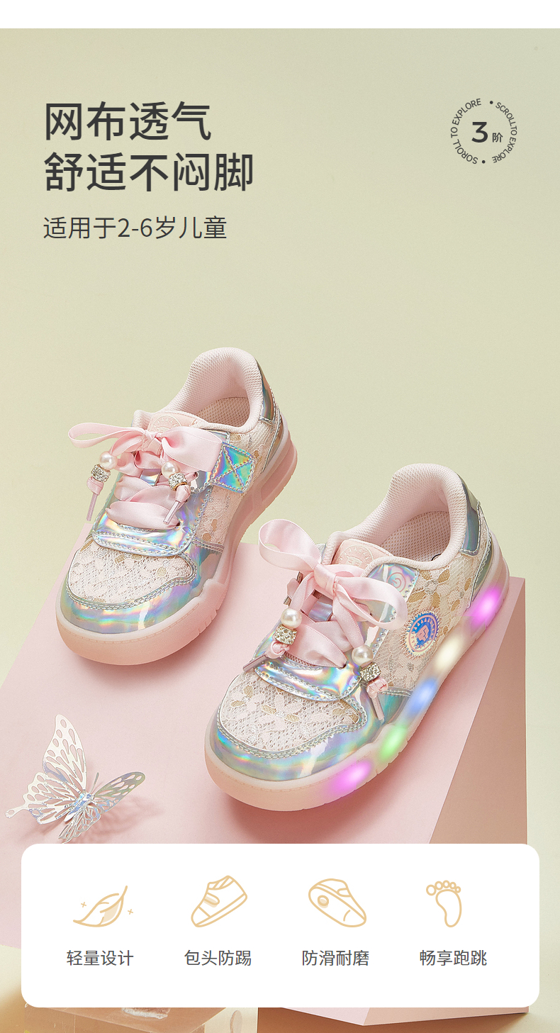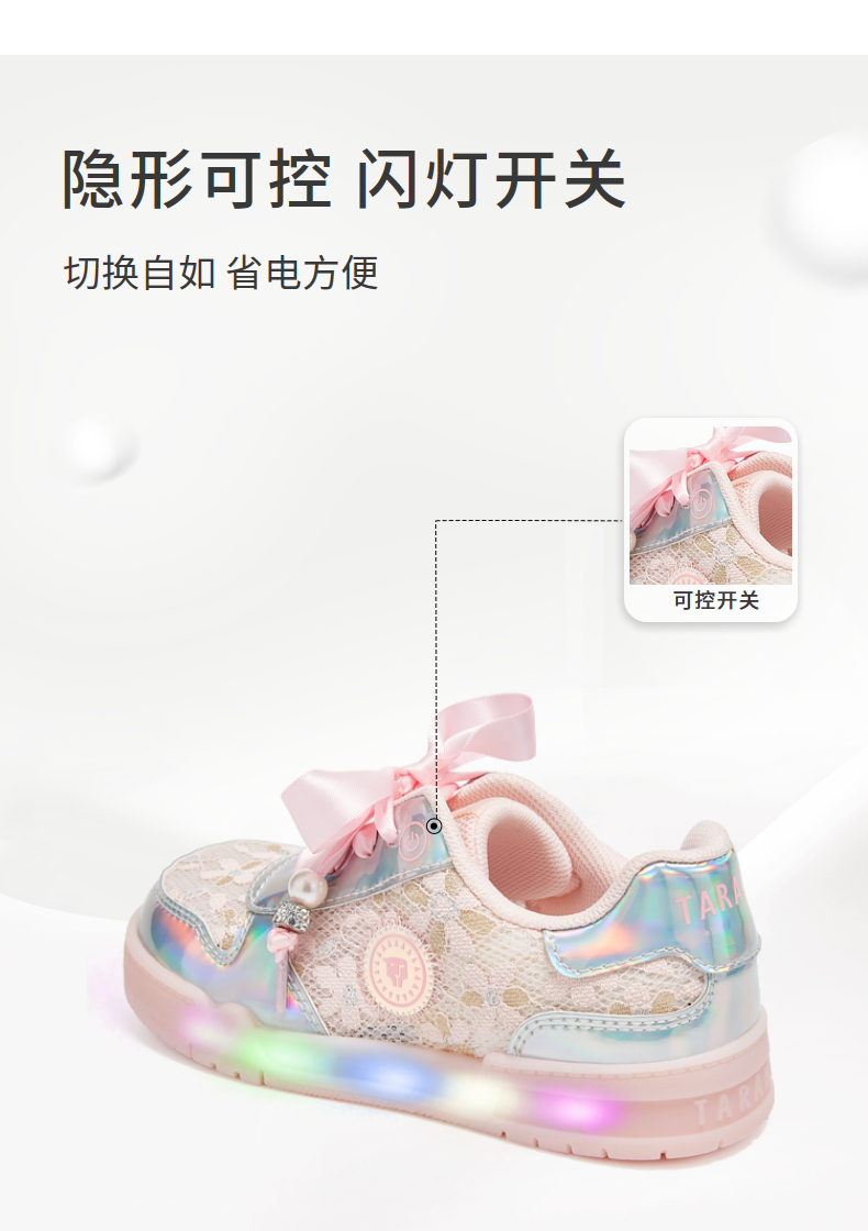 泰兰尼斯2025春季儿童新款闪灯鞋子女童开关可控防滑舒适公主板鞋 T02X5A5976