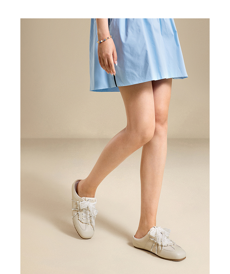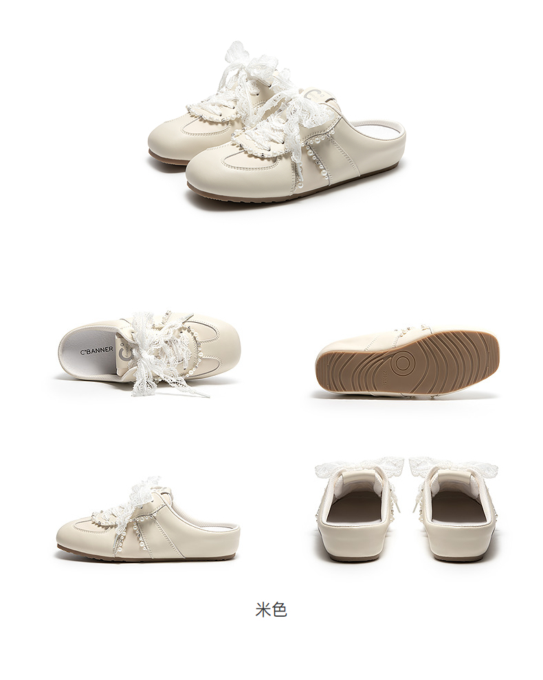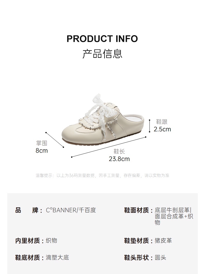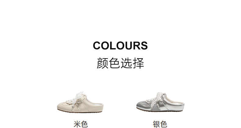 千百度蝴蝶结银色德训包头拖女款薄底平底一脚蹬拖鞋A25283801