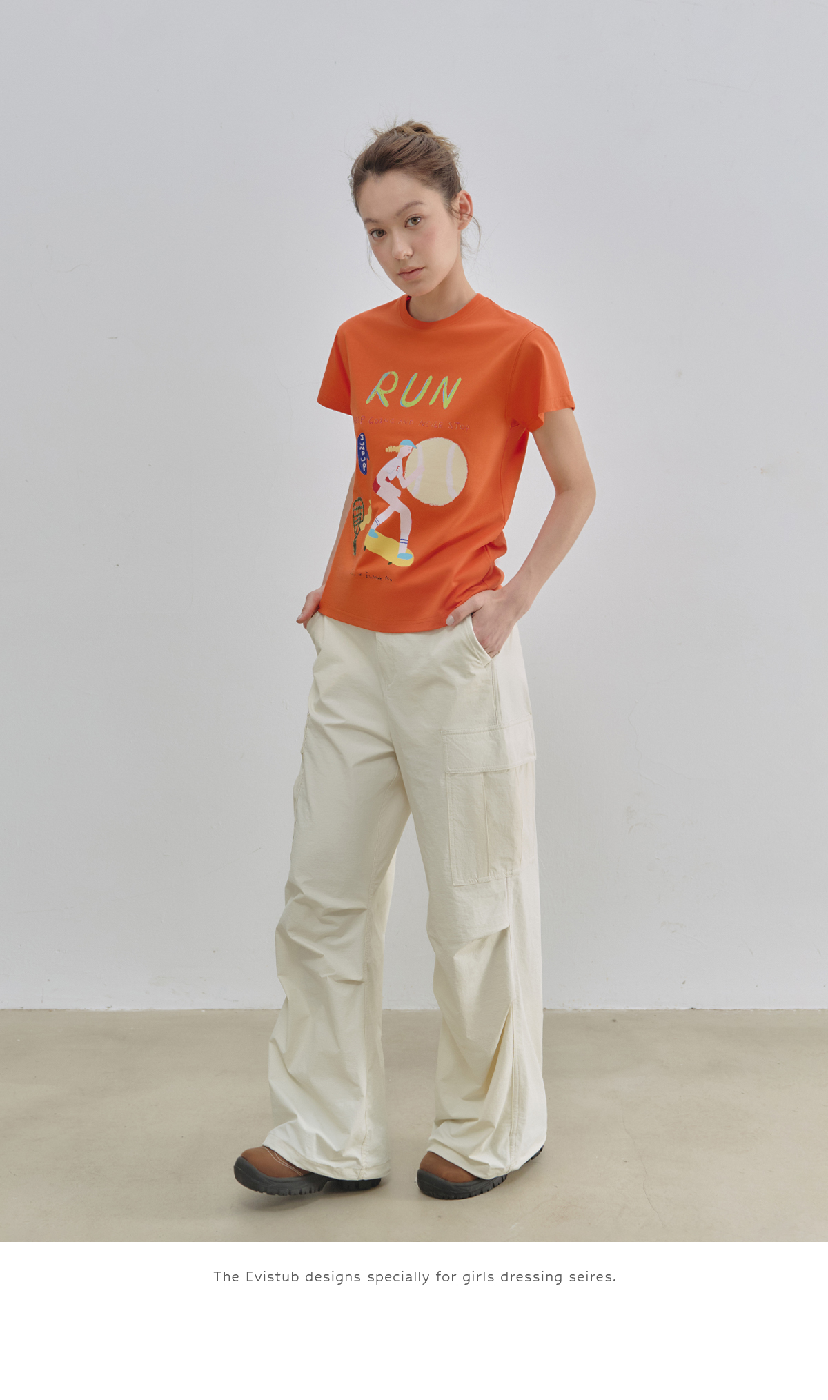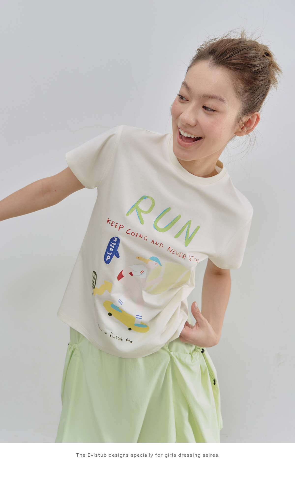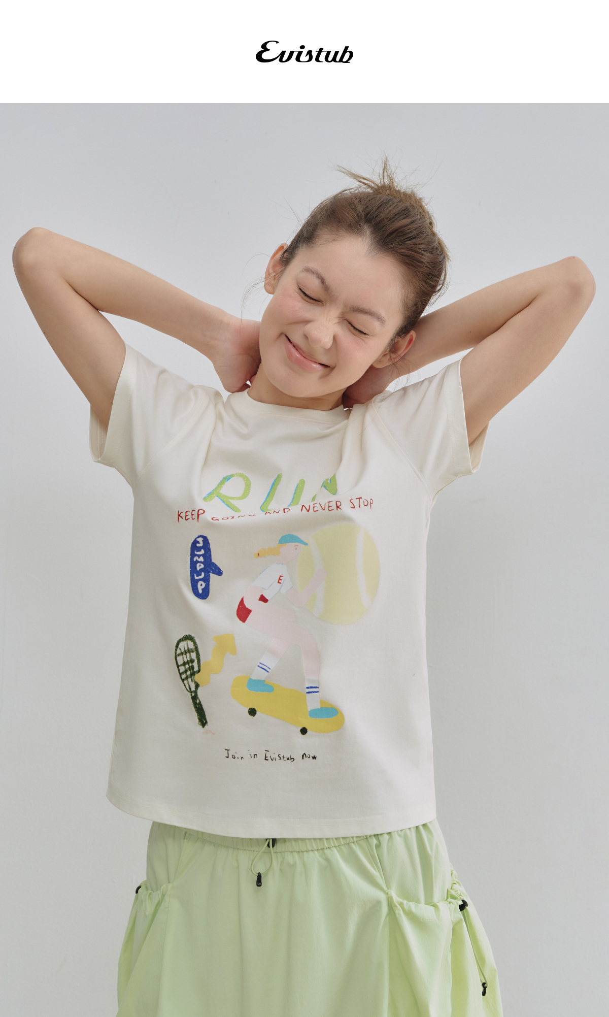Evistub/E-5XDX457/趣味运动印花正肩T恤女夏