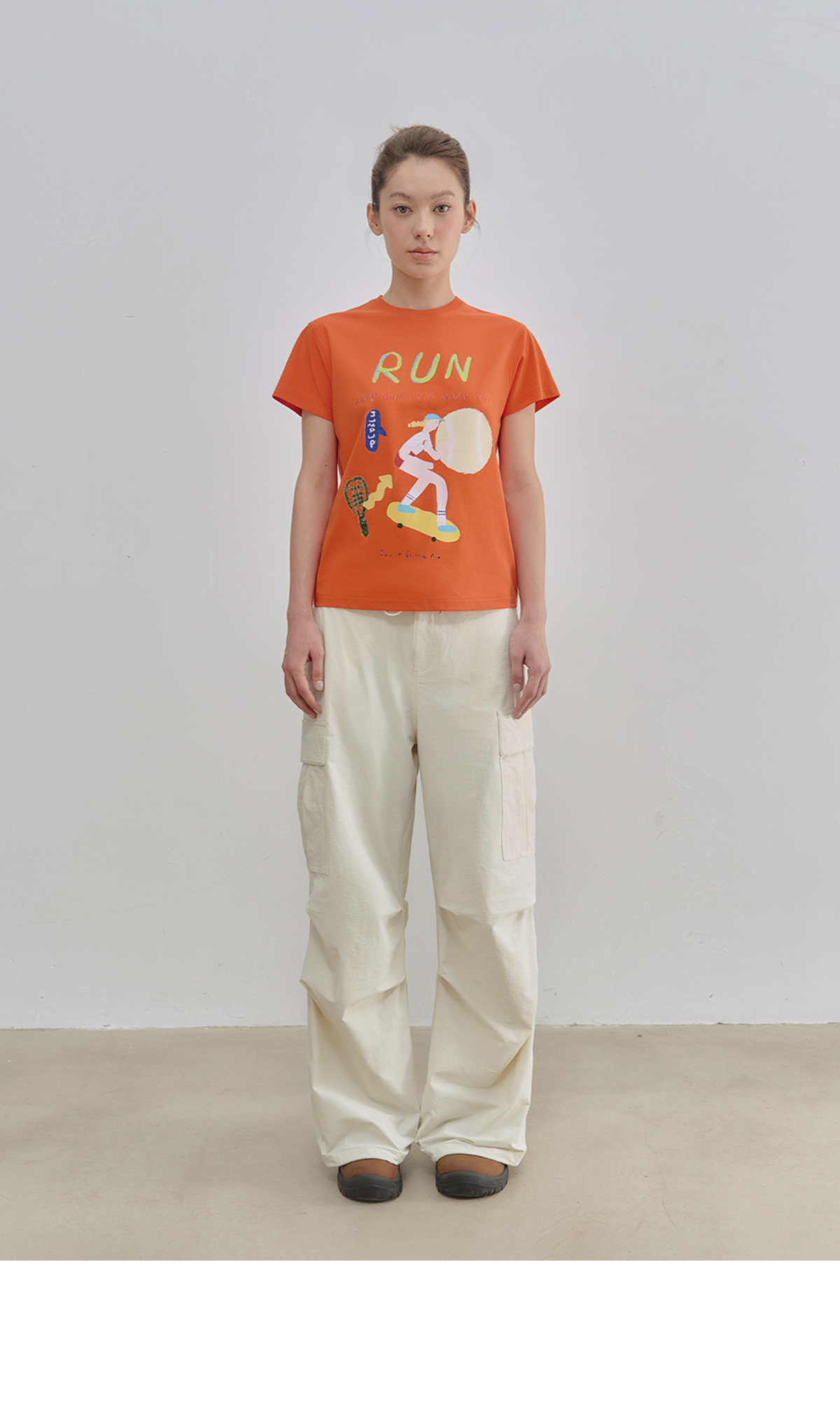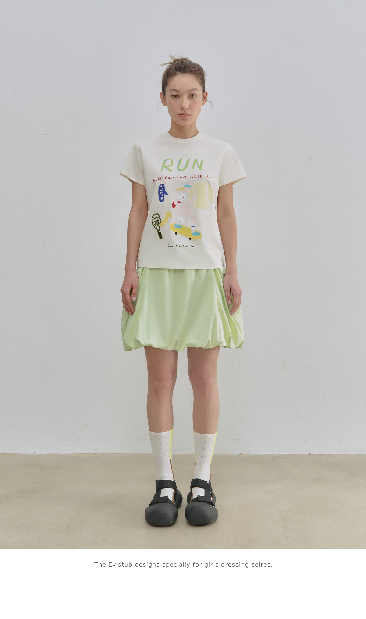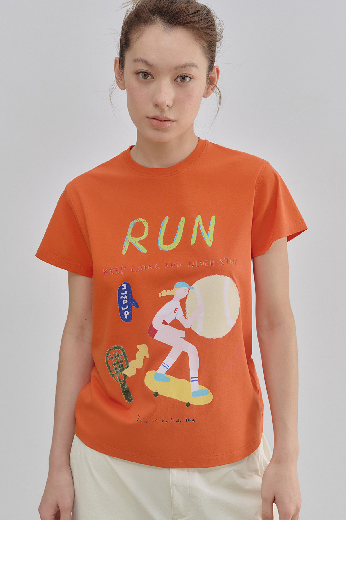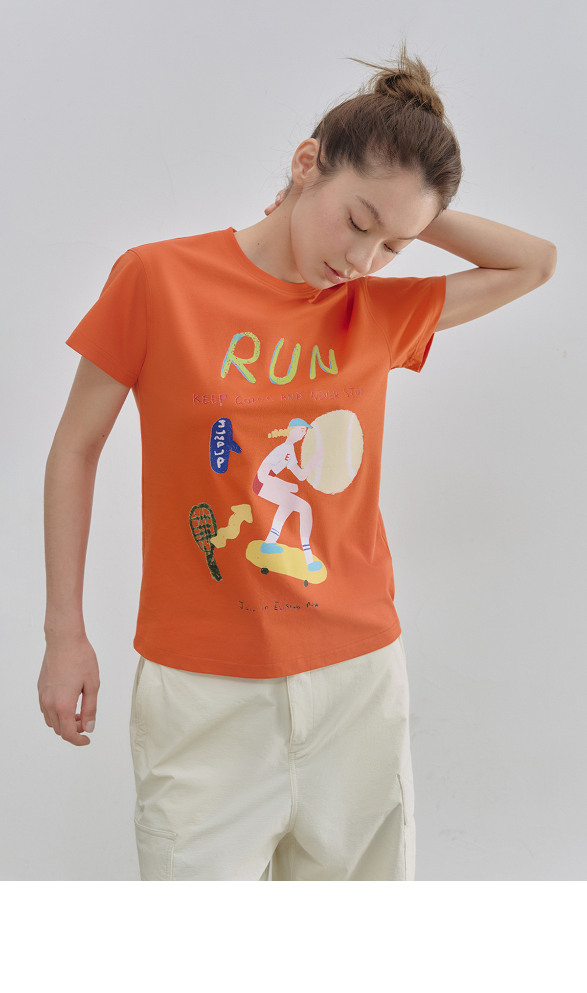 Evistub/E-5XDX457/趣味运动印花正肩T恤女夏