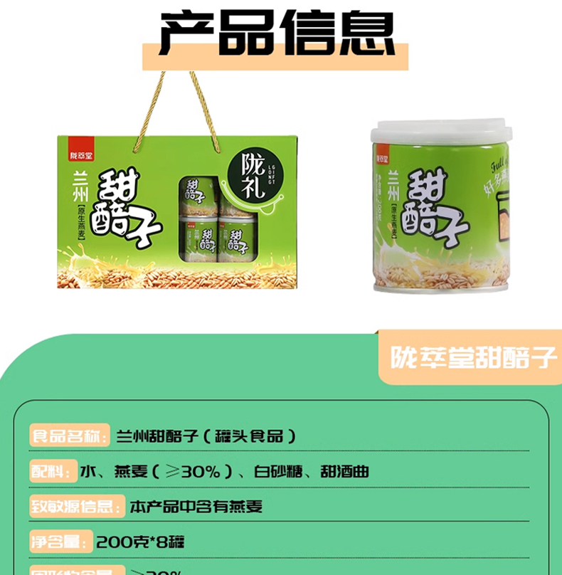 陇萃堂 陇礼兰州甜醅子(1.6千克/200g*8)/盒