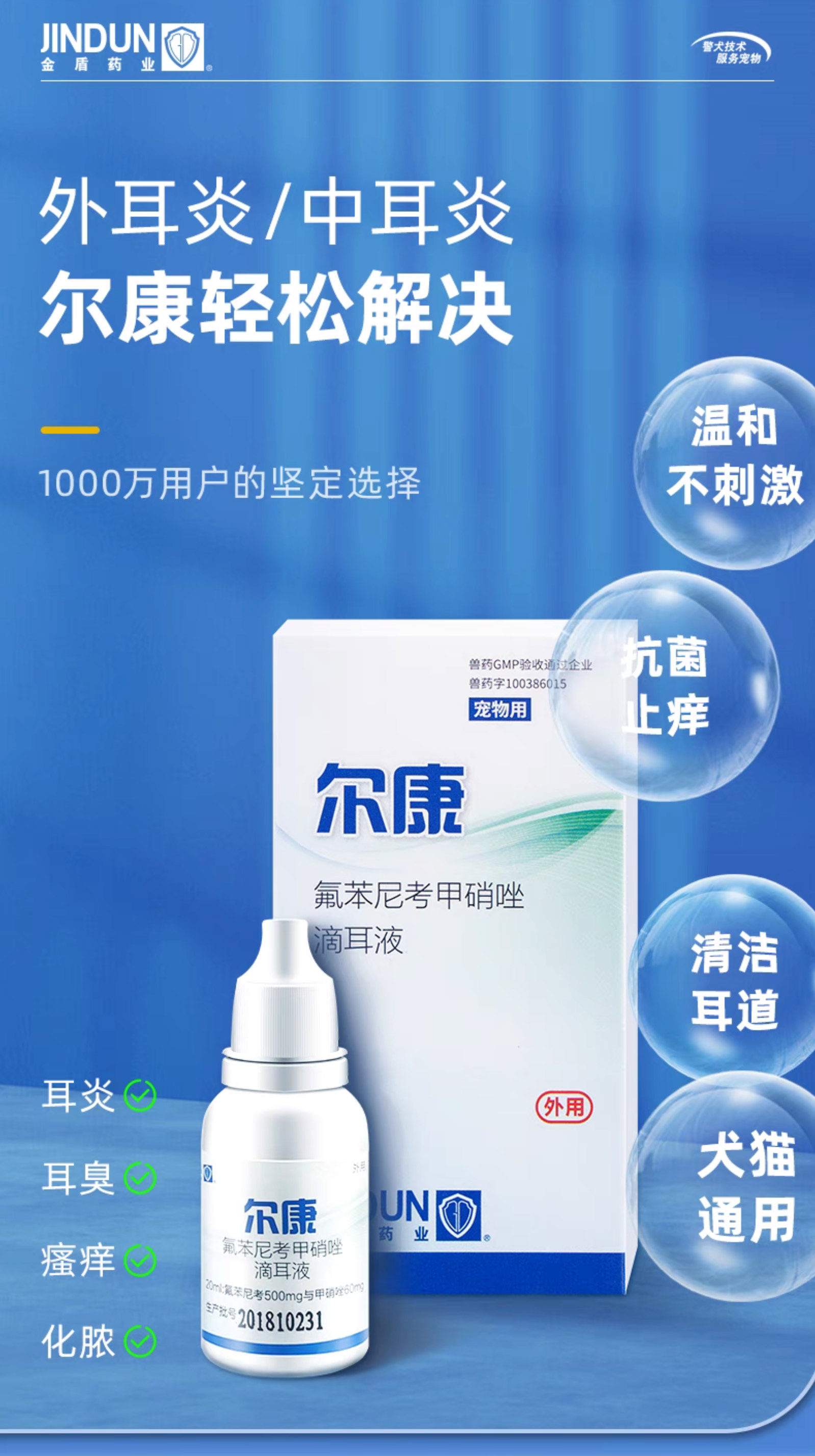 金盾尔康滴耳液尔康耳螨猫咪洗耳液耳康滴耳液狗中耳炎耳螨专用药
