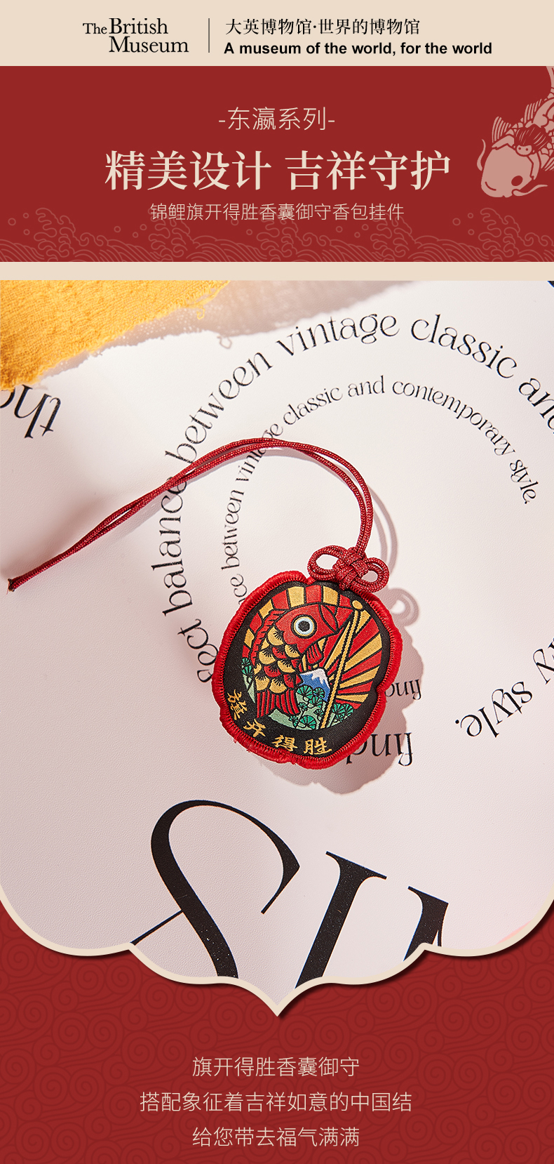 大英博物馆东瀛系列锦鲤旗开得胜 青松愉快健康平安 龙腾万里福禄双全 香囊御守香包挂件