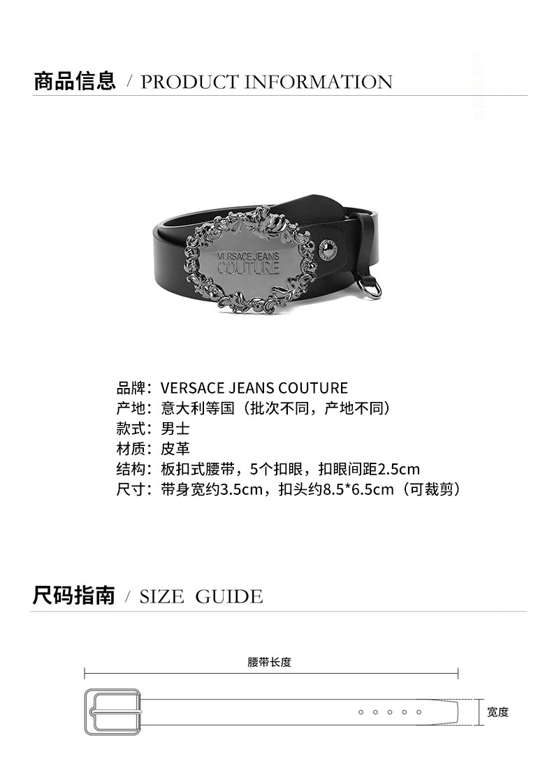 VERSACE JEANS COUTURE/VERSACE JEANS COUTURE范思哲 男士皮革板扣式皮带腰带 71YA6F05 71627