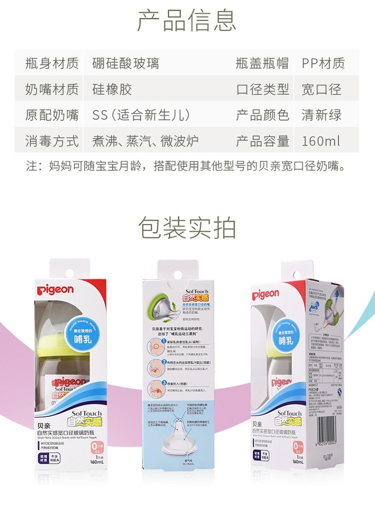 【一般贸易】贝亲—宽口径玻璃奶瓶240ml(黄色)/ 160ml(绿色)AA71+AA72