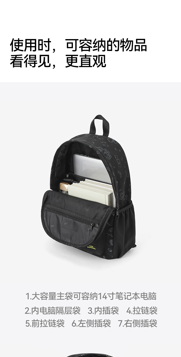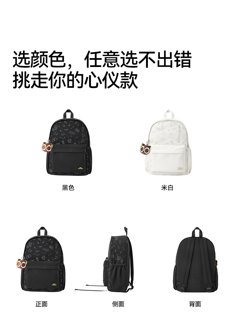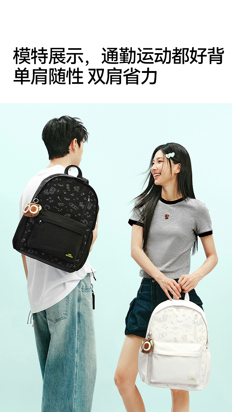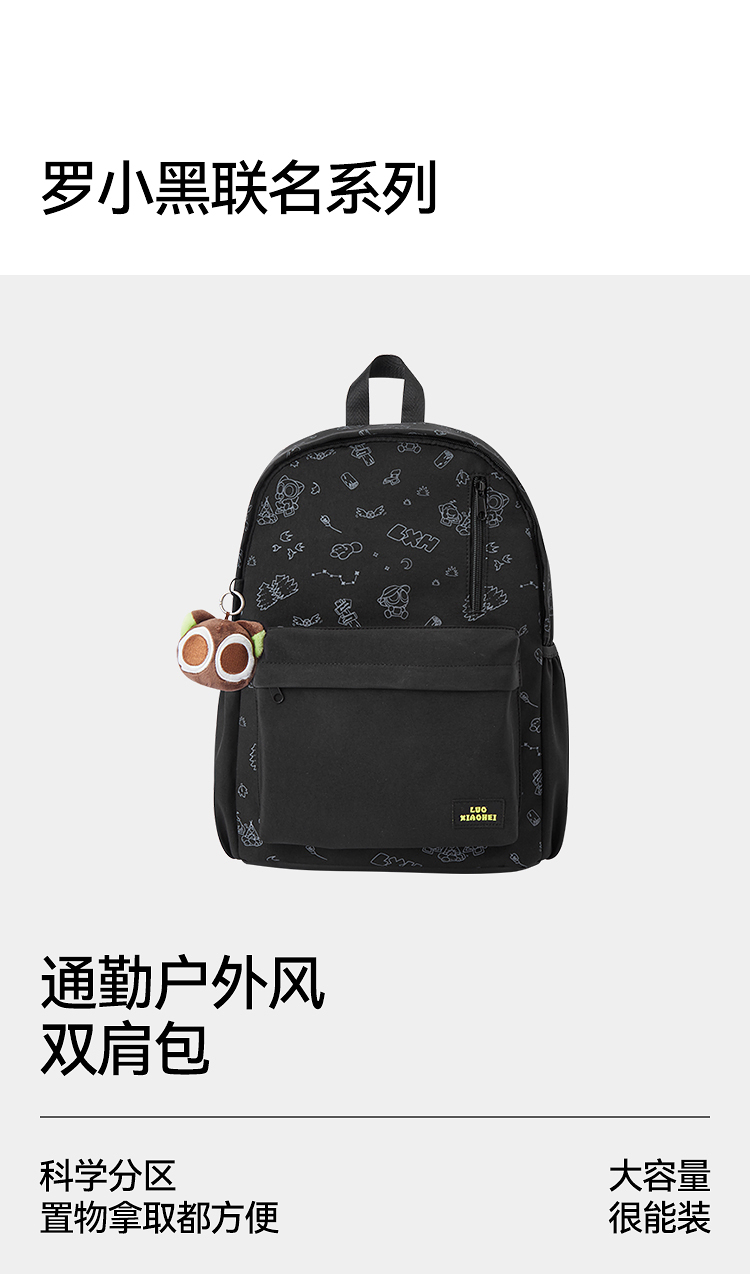 商场同款|森马罗小黑双肩包男时尚印花情侣包2026新款大容量背包