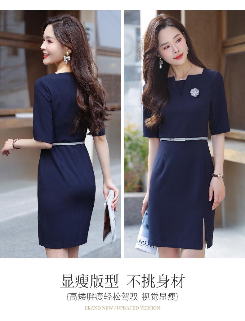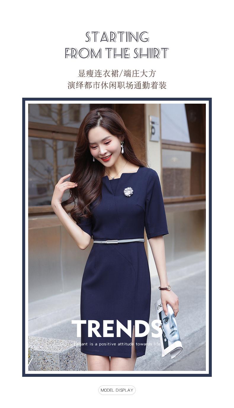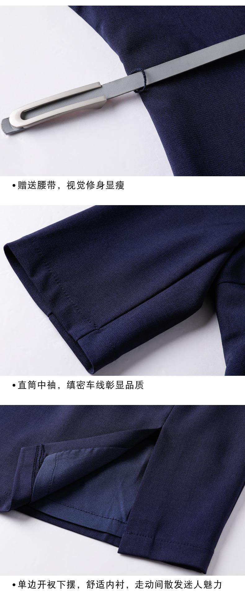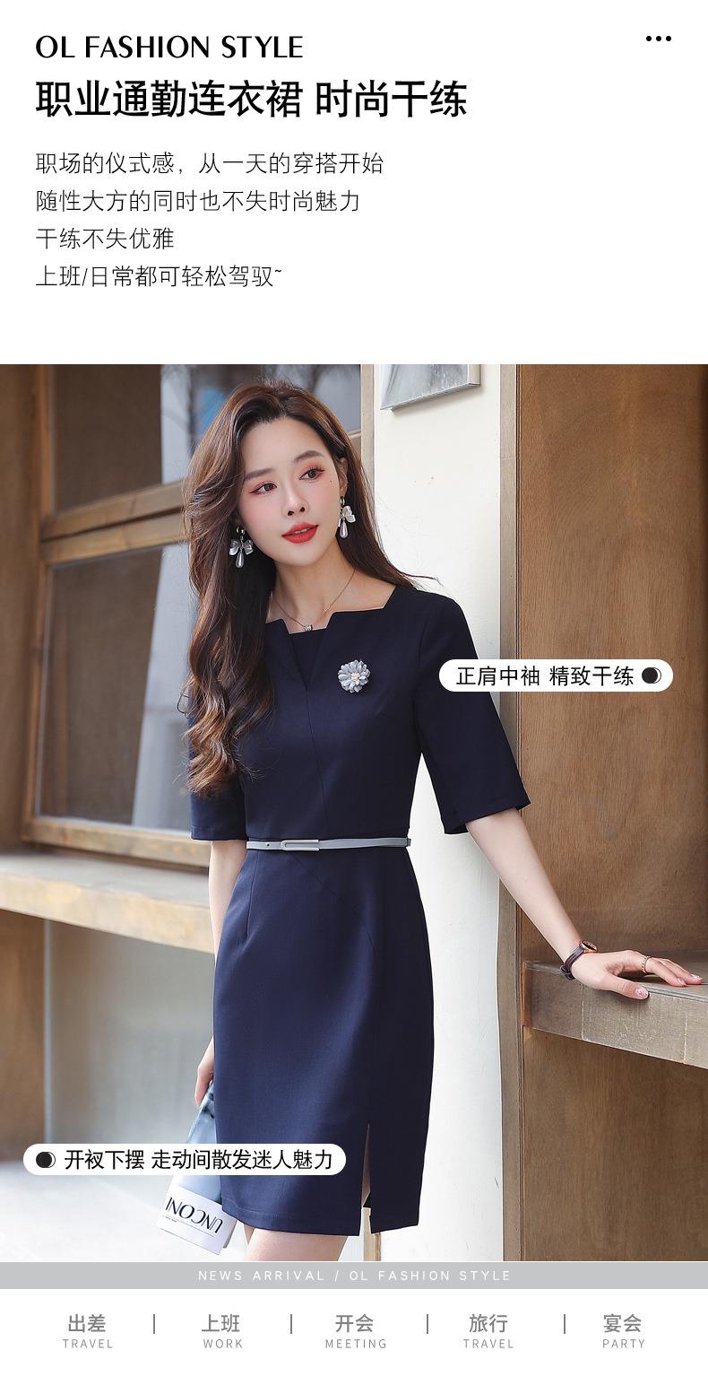 娜璐多 简约风时尚中袖连衣裙夏季薄款2023年新款开叉配腰带设计感通勤OL