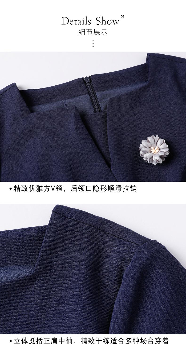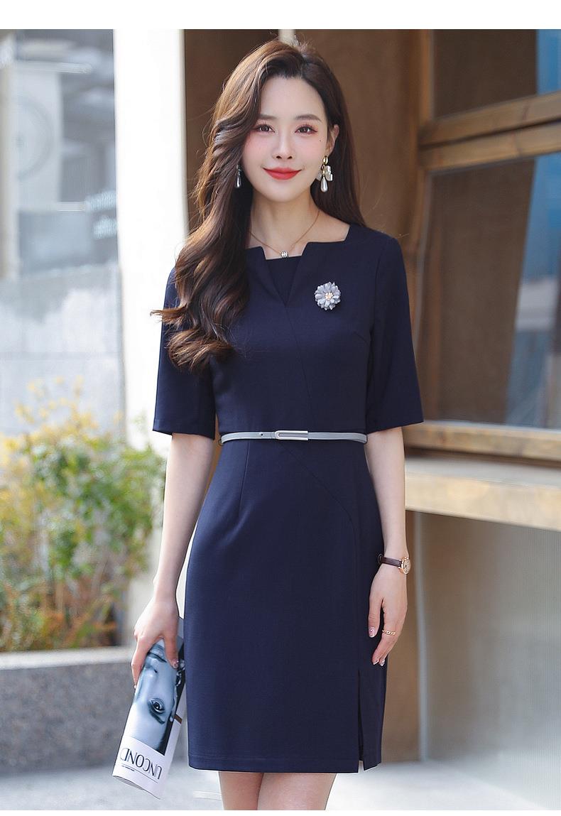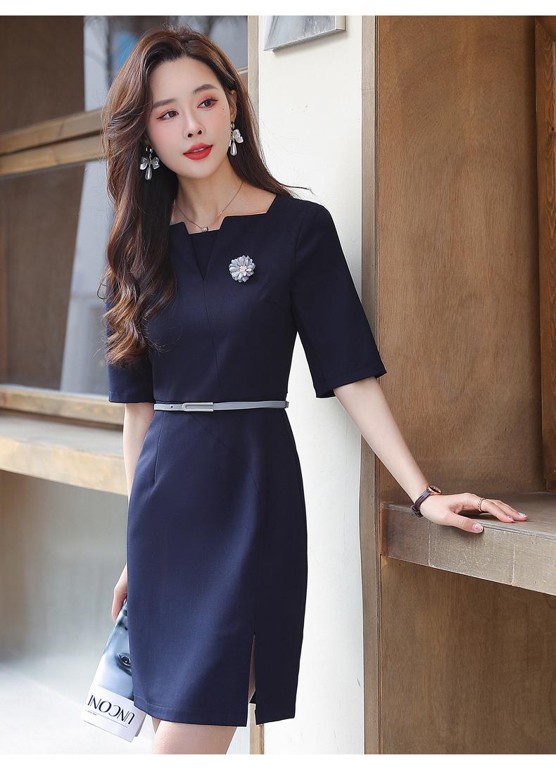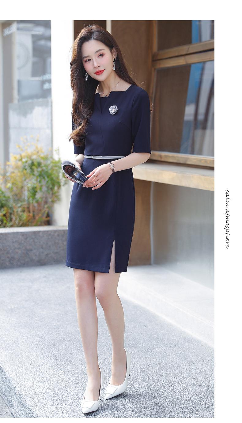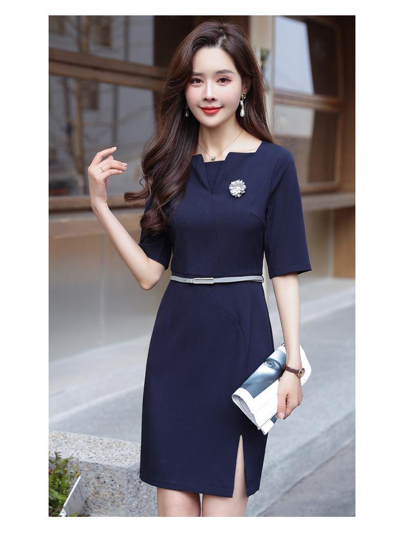 娜璐多 简约风时尚中袖连衣裙夏季薄款2023年新款开叉配腰带设计感通勤OL