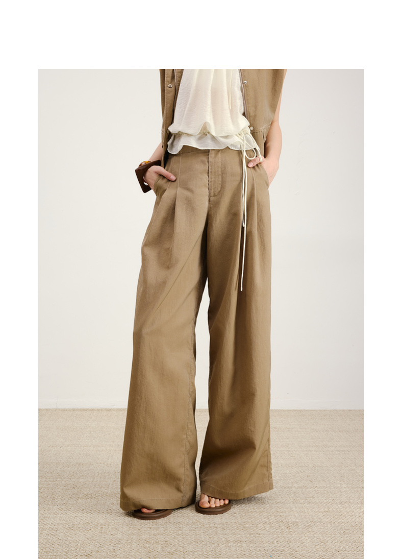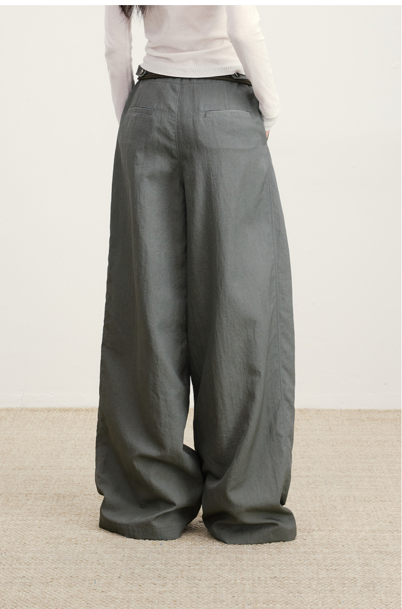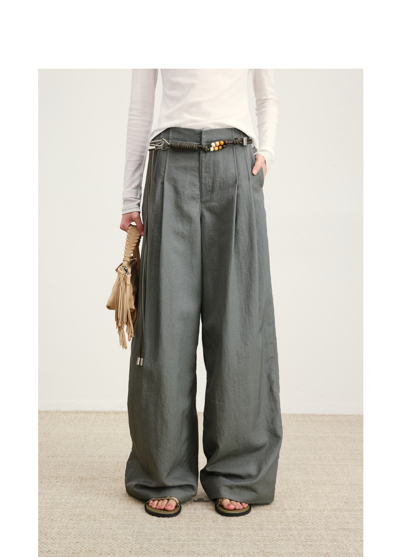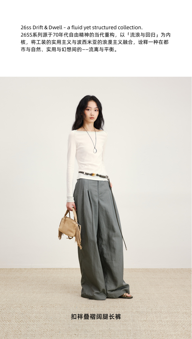 lost in echo2026年春季新款休闲百搭扣袢叠褶宽松阔腿及地长裤女