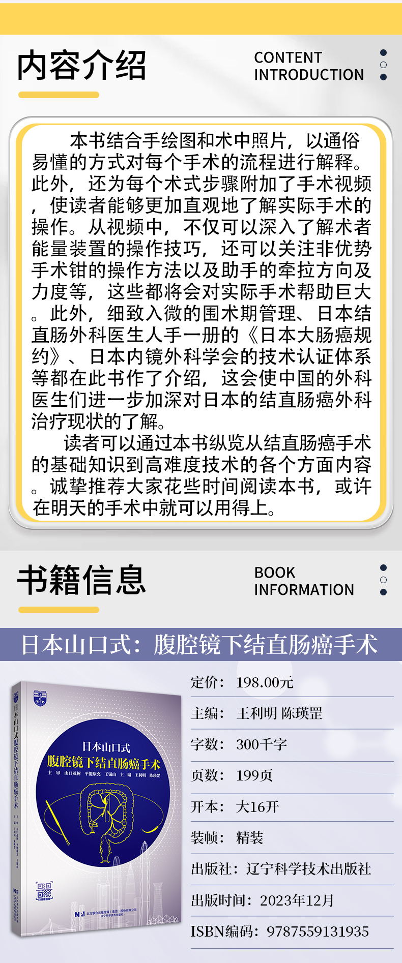 日本山口式腹腔镜下结直肠癌手术 附视频 王利明 陈瑛罡 结直肠癌外科手术技术基础知识操作流程技巧围术期管理辽宁科学技术出版社