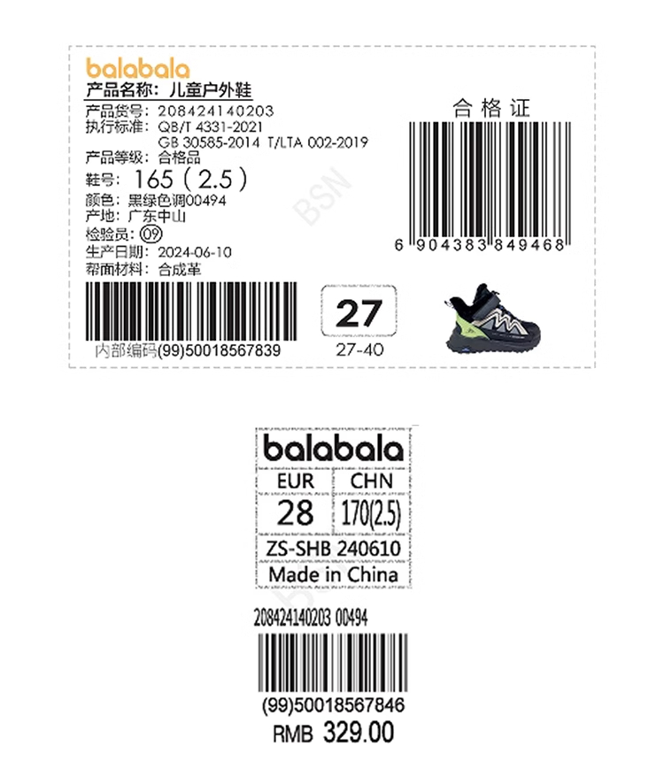巴拉巴拉童鞋儿童运动靴男童女童短靴加厚加绒冬新款户外靴子