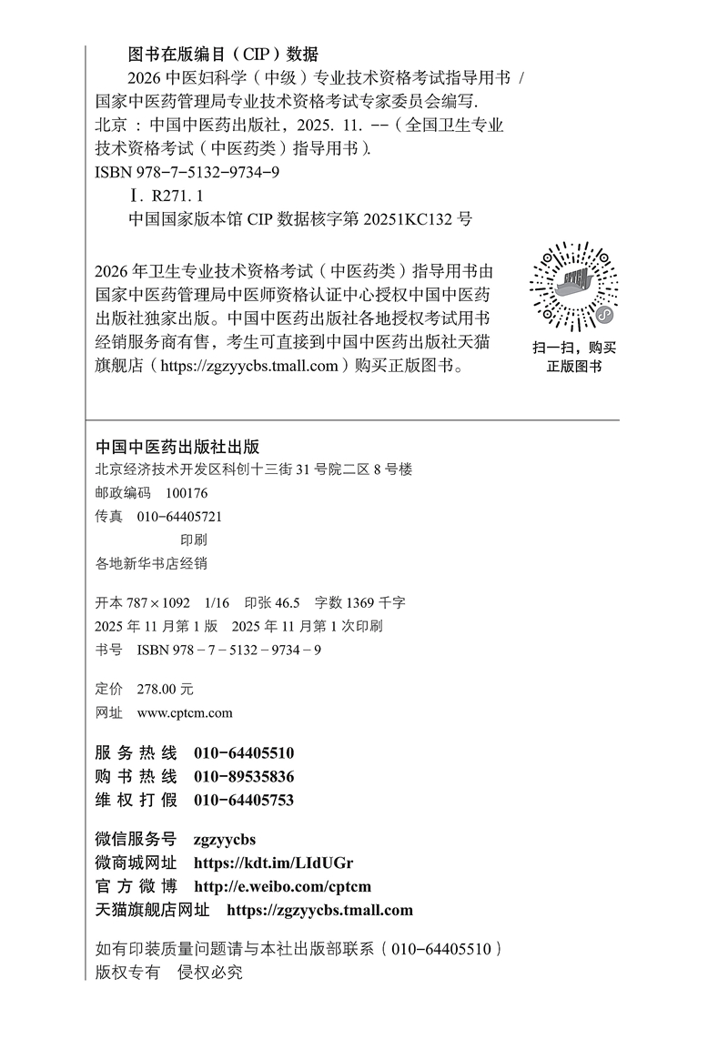 【出版社直发】2026中医妇科学(中级)专业技术资格考试指导用书 专业代码331 附赠考试大纲 中国中医药出版社9787513297349