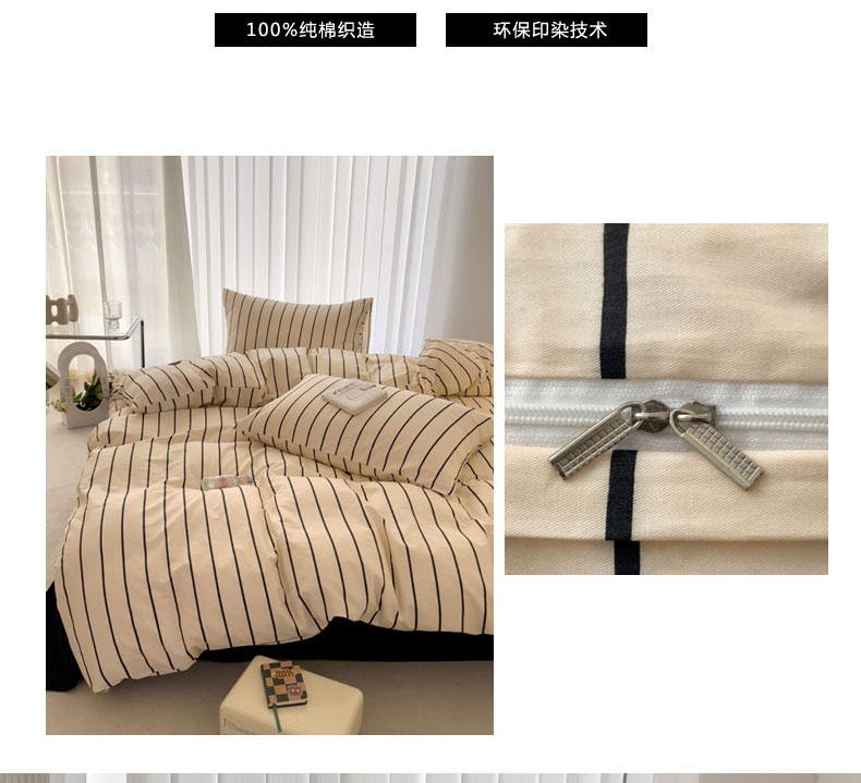 顶柔【自用送人好品】 全棉简约条纹三/四件套-TJ1597