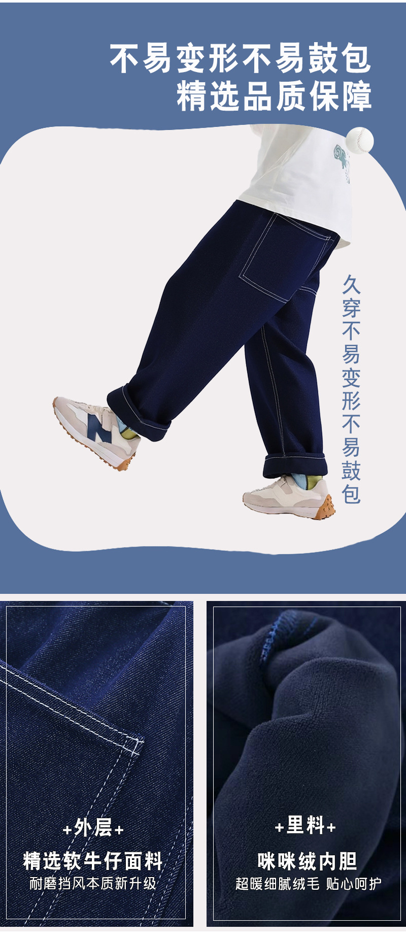 【一条像运动裤的软牛仔】儿童防褪色加绒牛仔裤H1024 100%