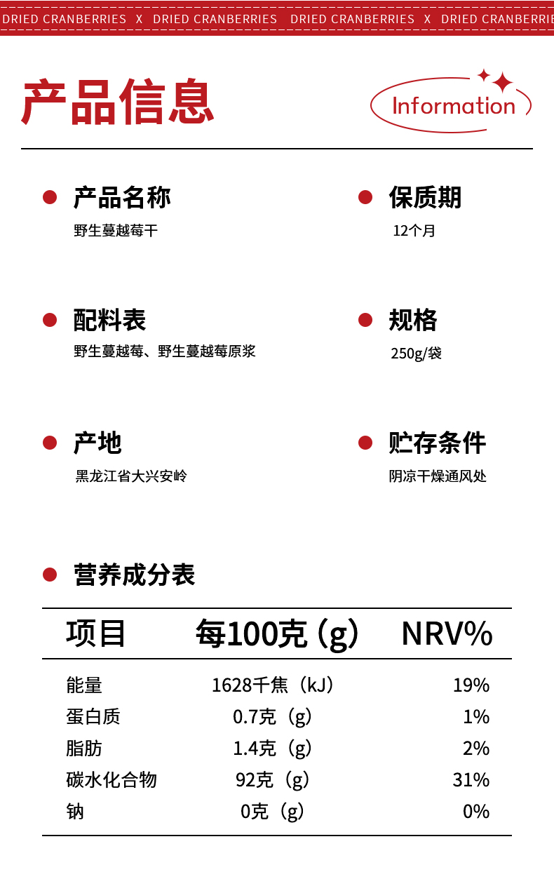 ⁴69元2大袋【野生蔓越莓果干(红豆果)】 250g/袋 YC04-CRMM-YKSC