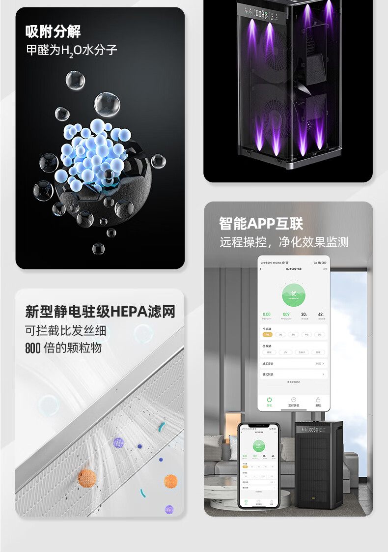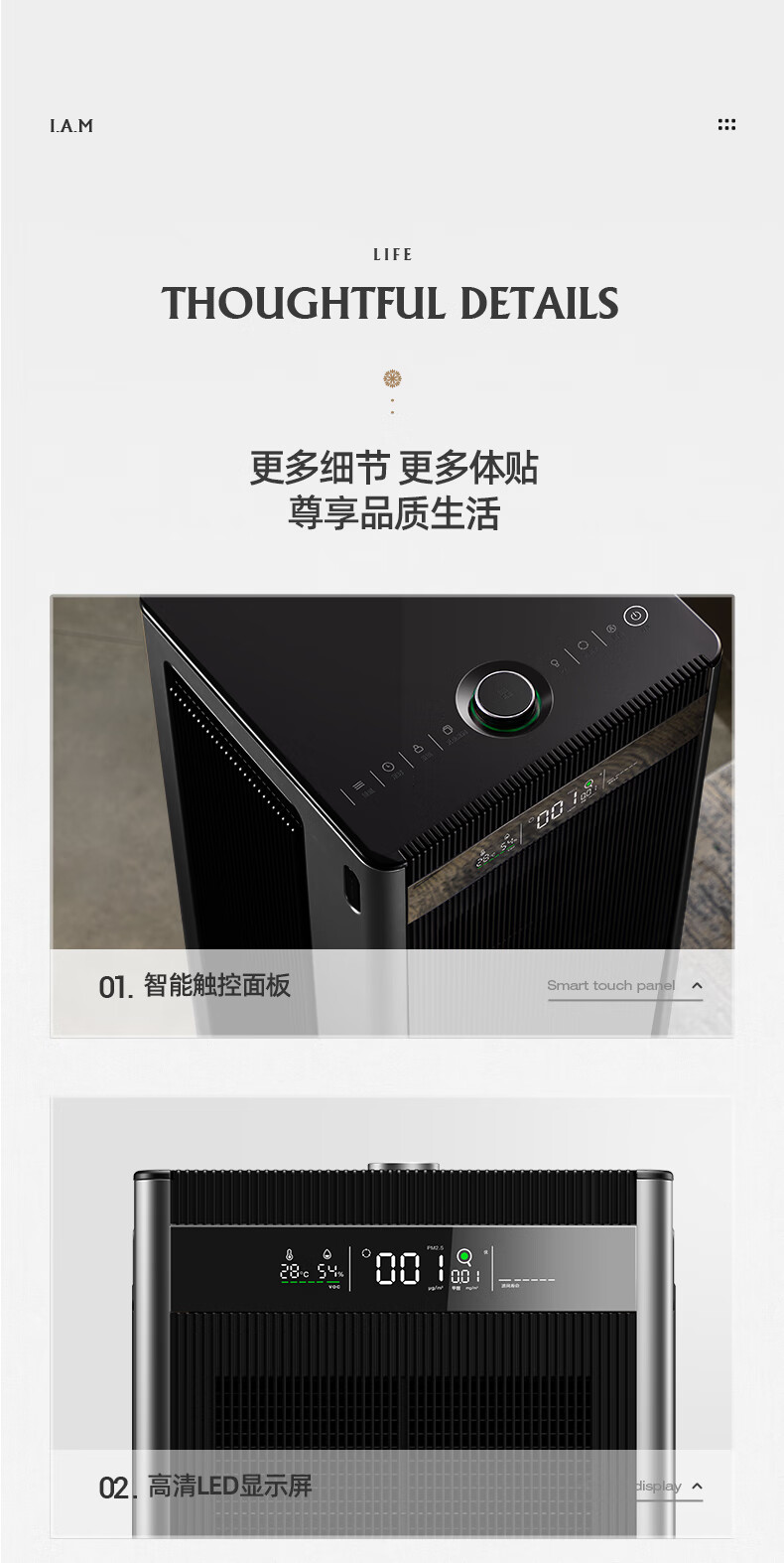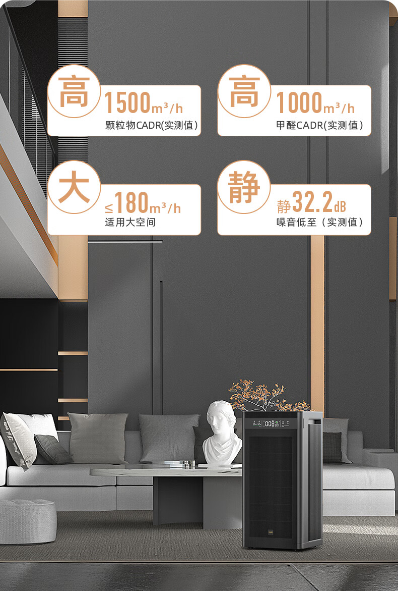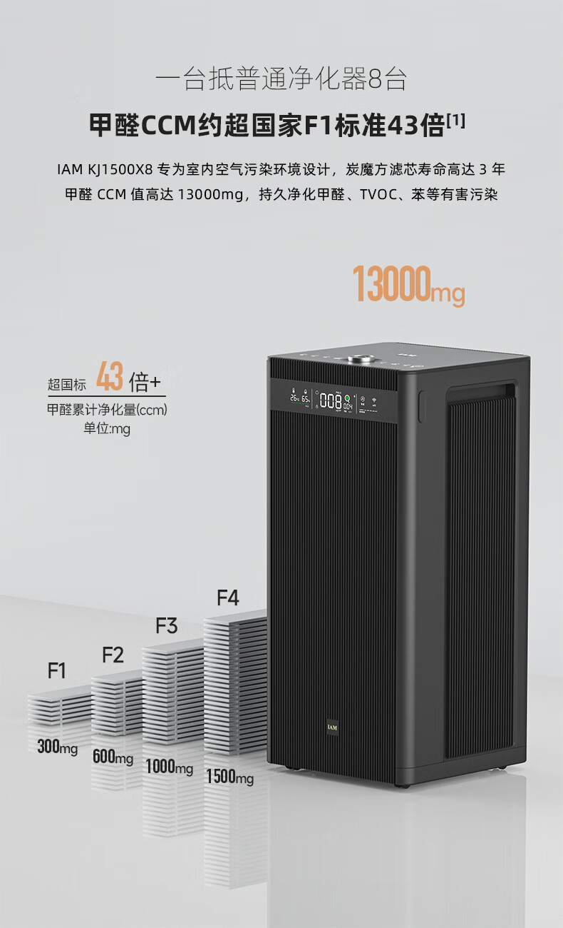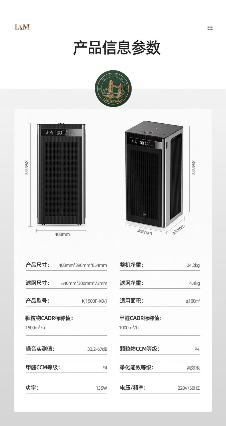 IAM空气净化器 除甲醛细菌家用办公商用负离子甲醛数显旗舰尊享款 KJ1500F-X8