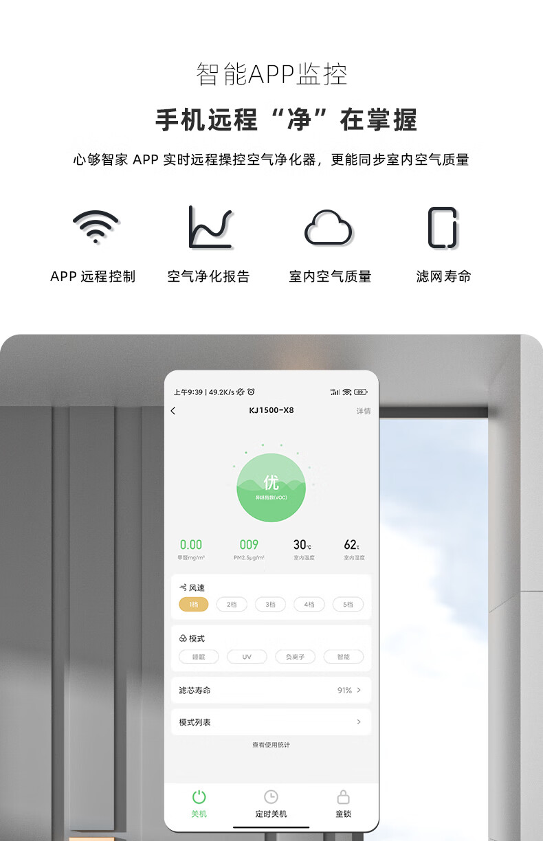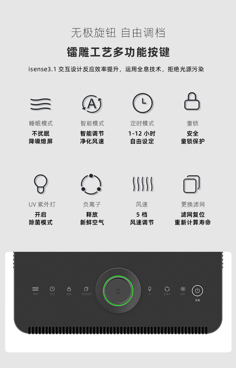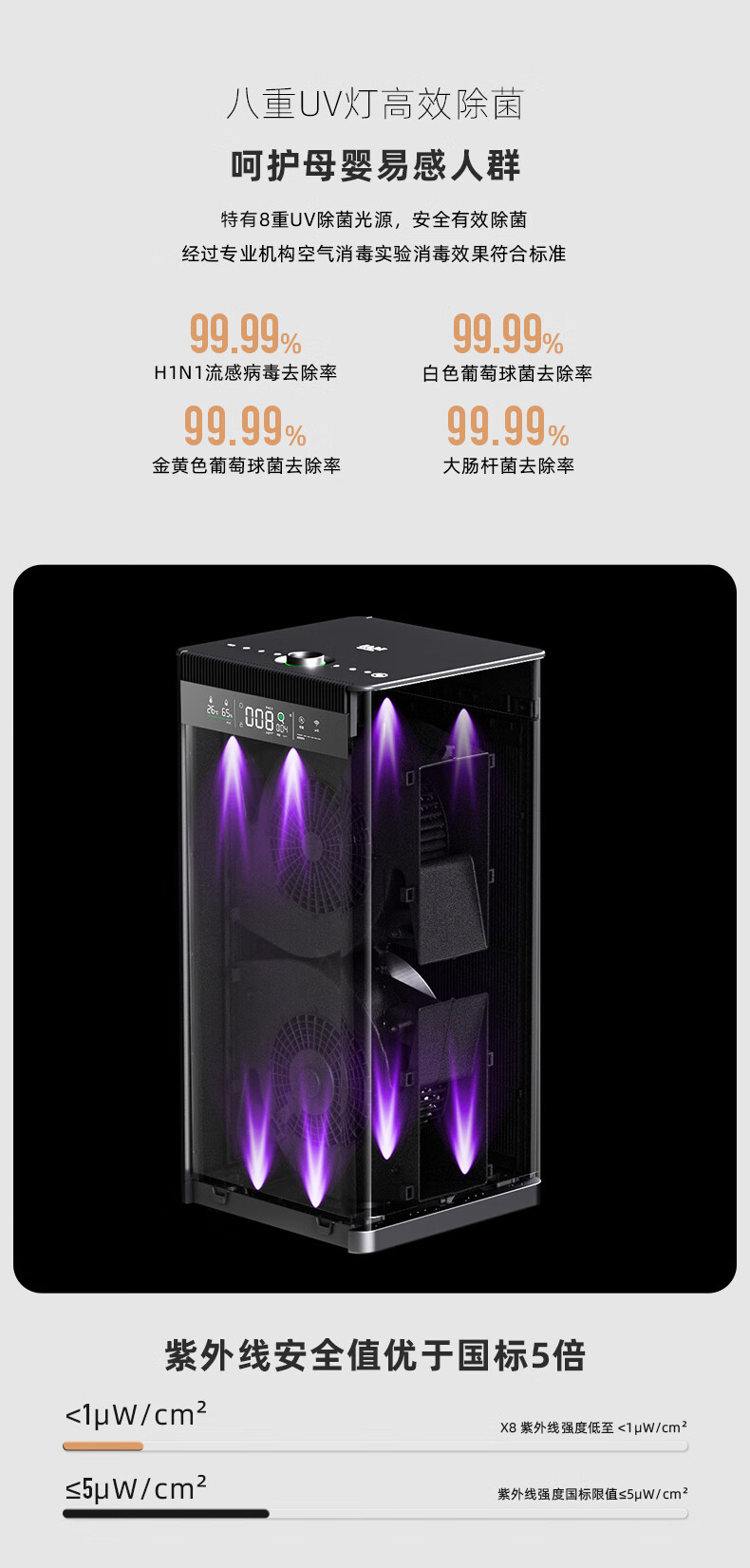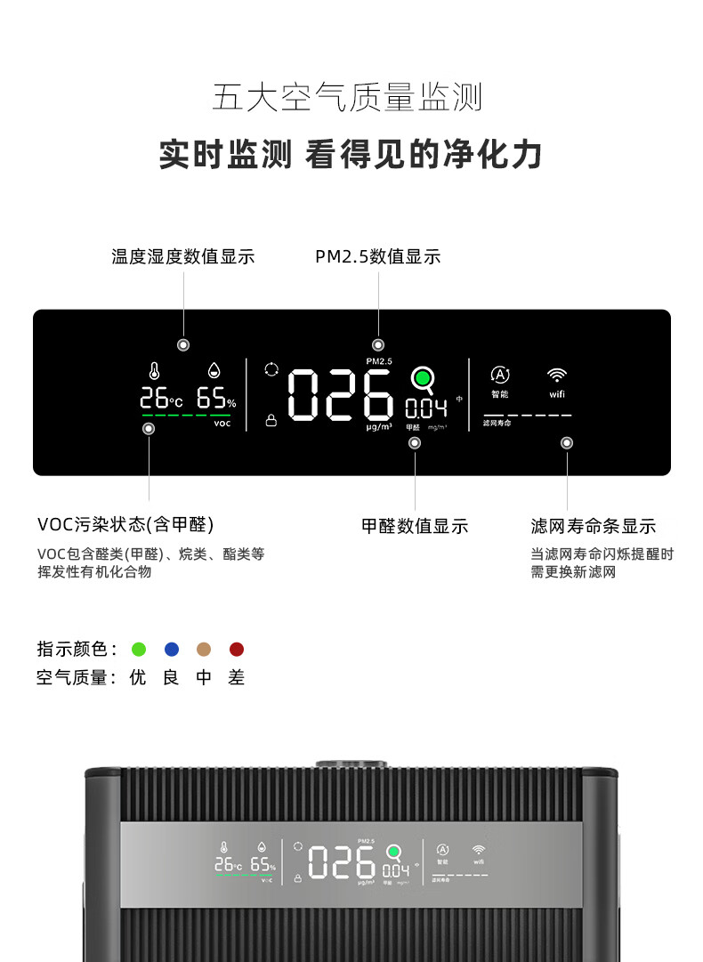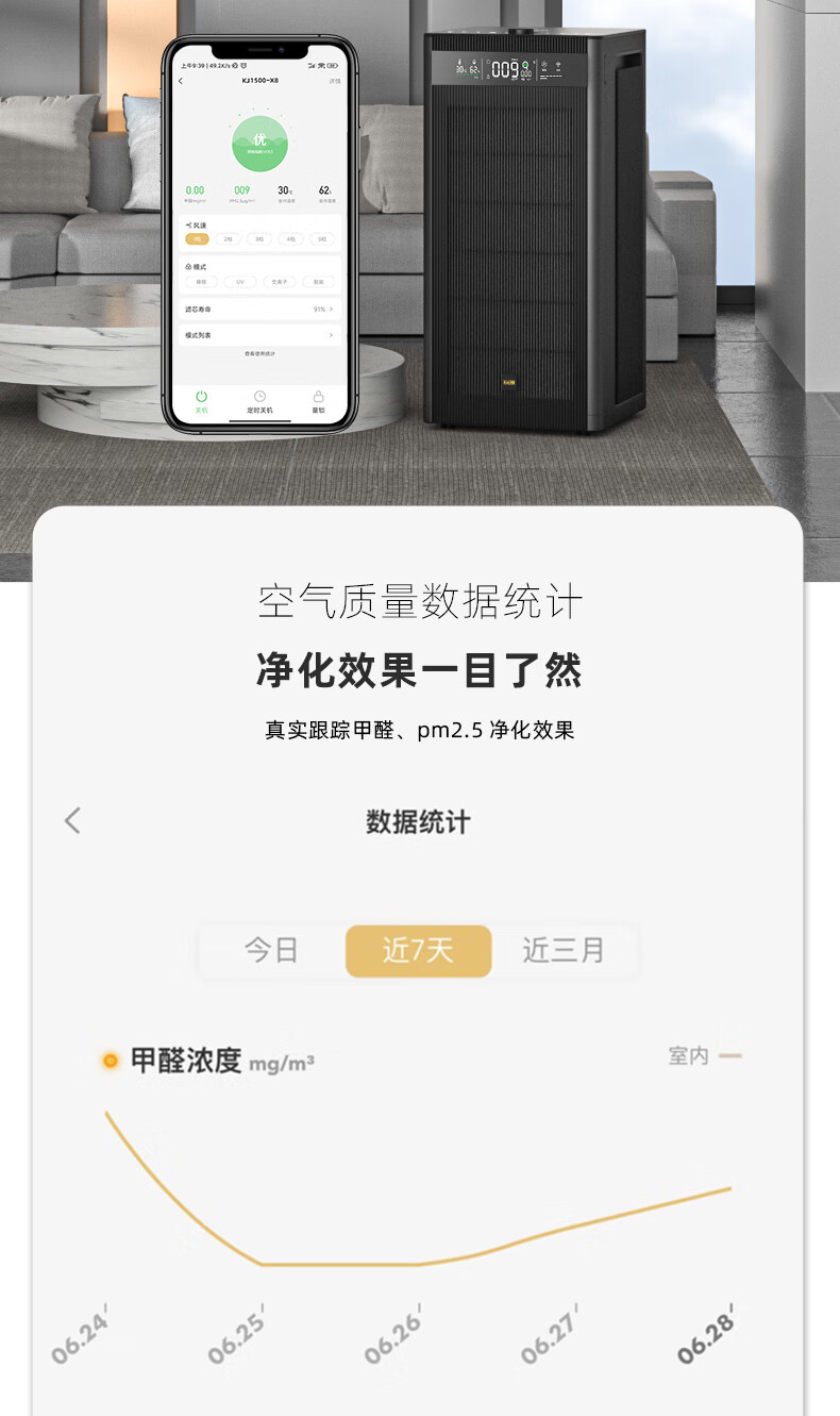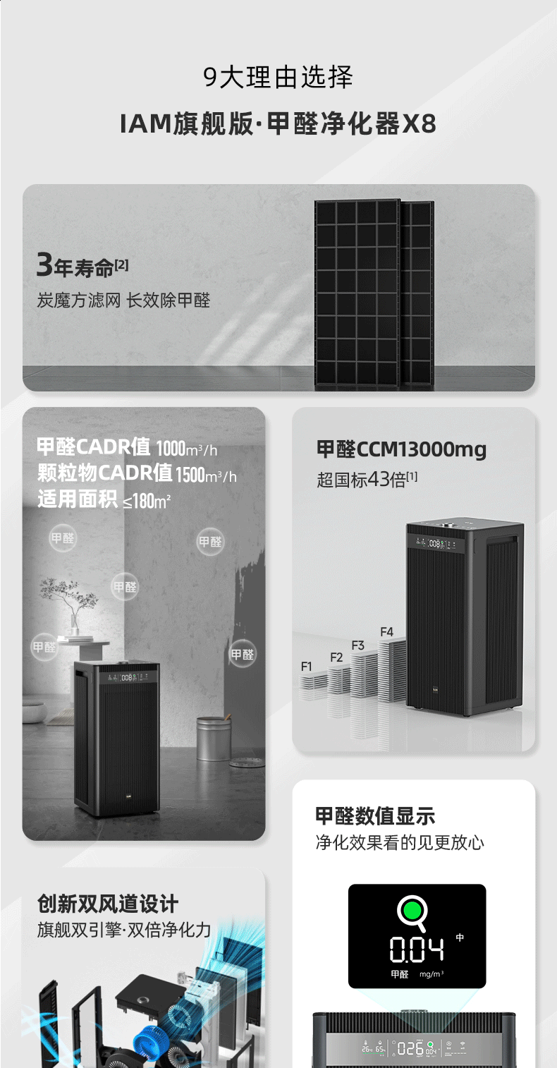 IAM空气净化器 除甲醛细菌家用办公商用负离子甲醛数显旗舰尊享款 KJ1500F-X8