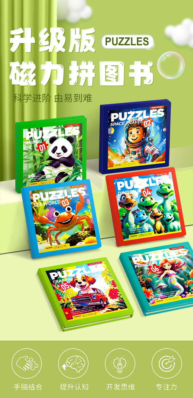 【趣味拼图!提高专注力】磁力拼图儿童益智玩具进阶3到6岁折叠式磁性宝宝早教启蒙认知。ry