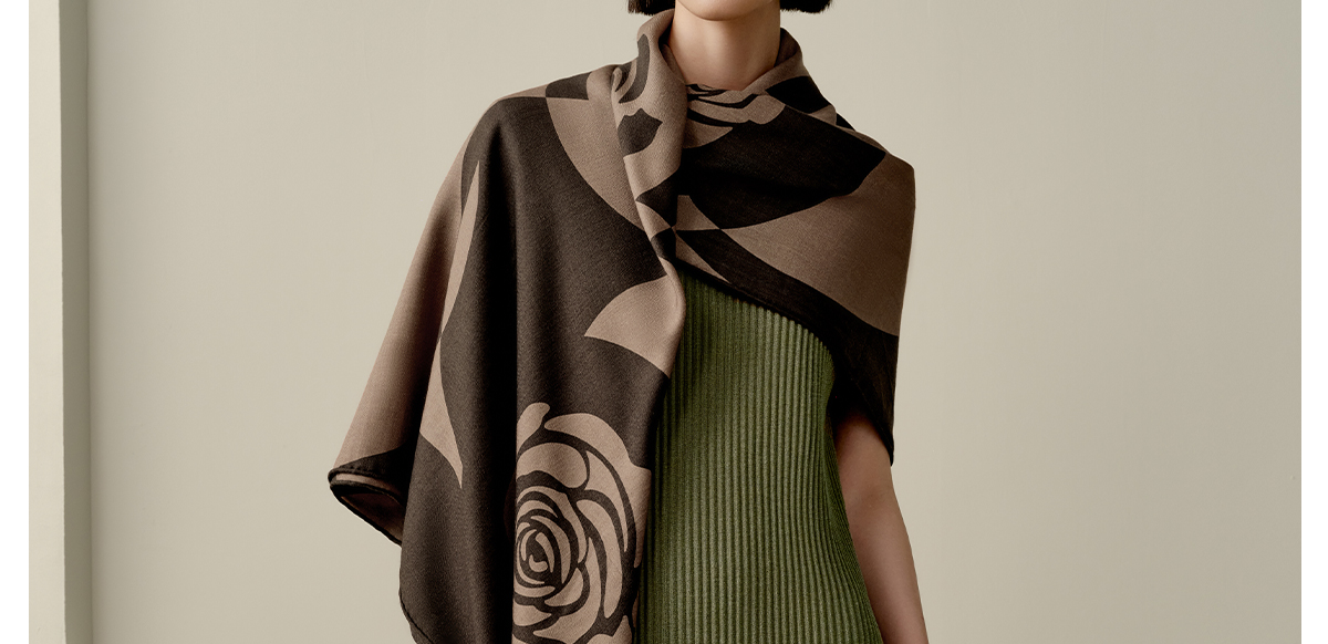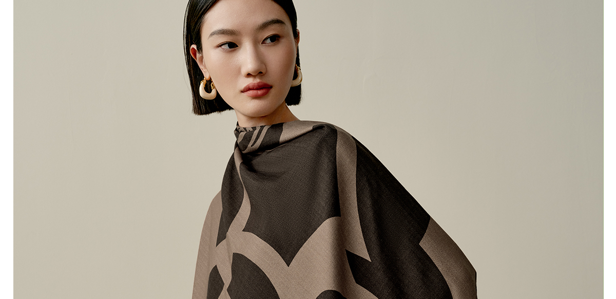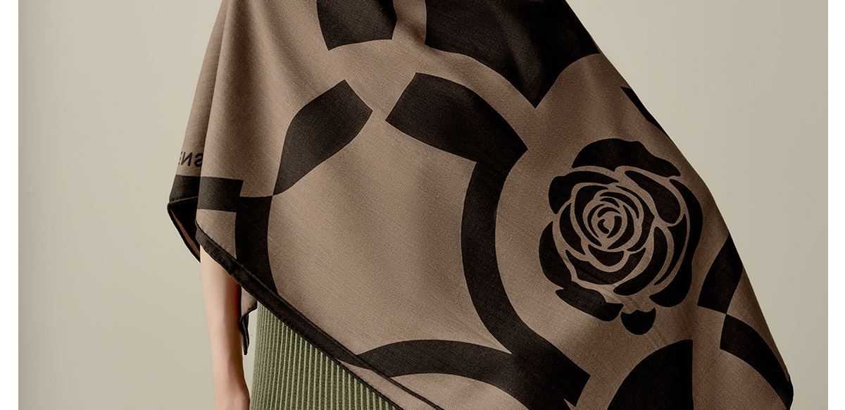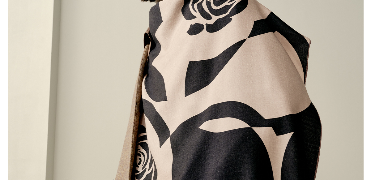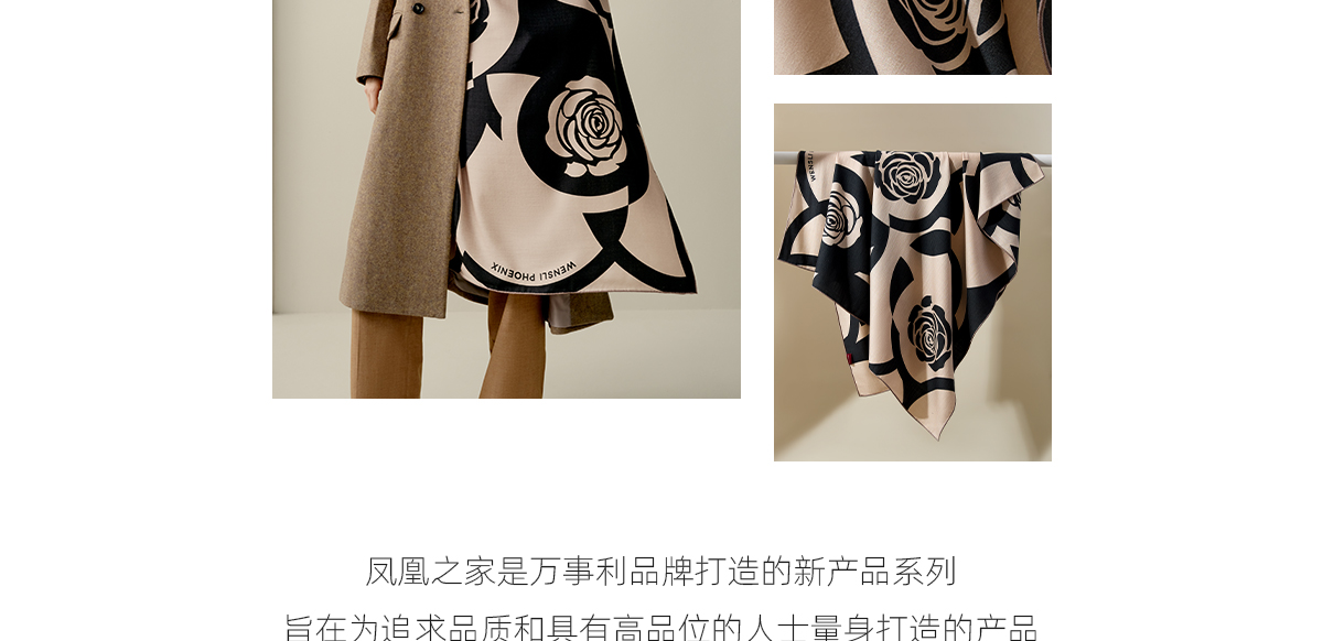 凤凰之家“法兰西来信”128厘米双面印花丝羊绒围巾
