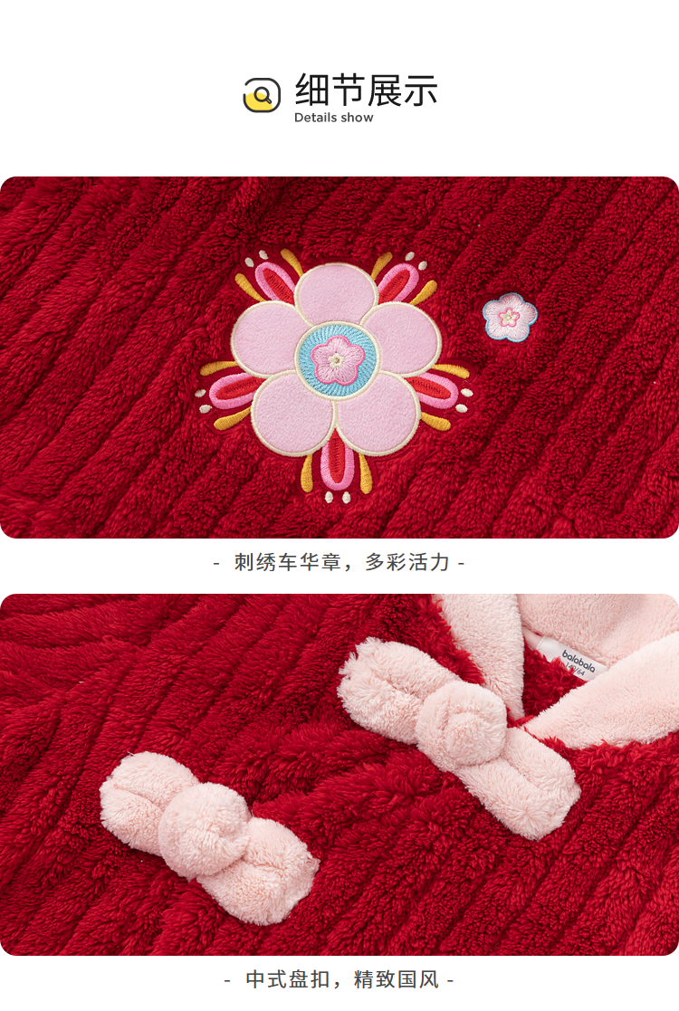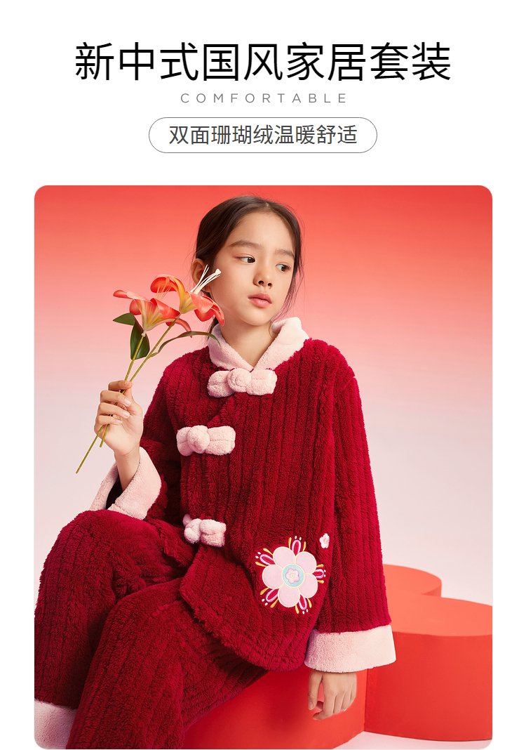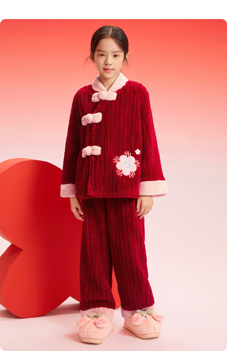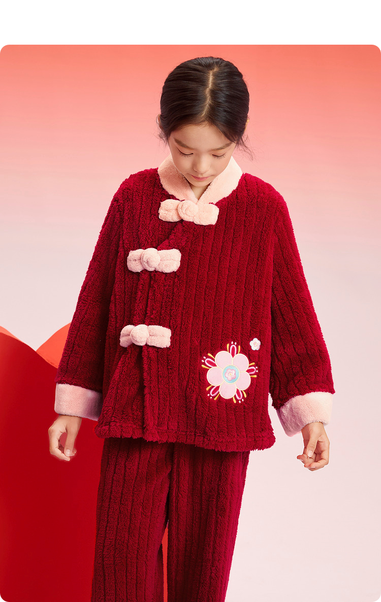 巴拉巴拉女童睡衣套装2025年款国风家居服拜年新年红色本命珊瑚绒