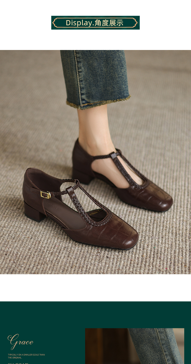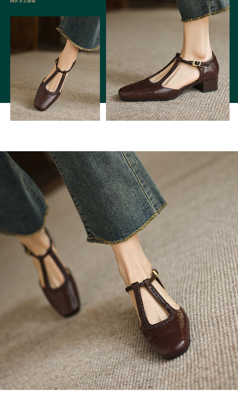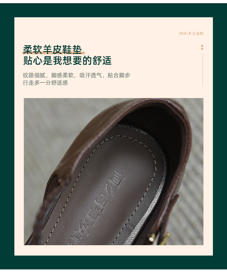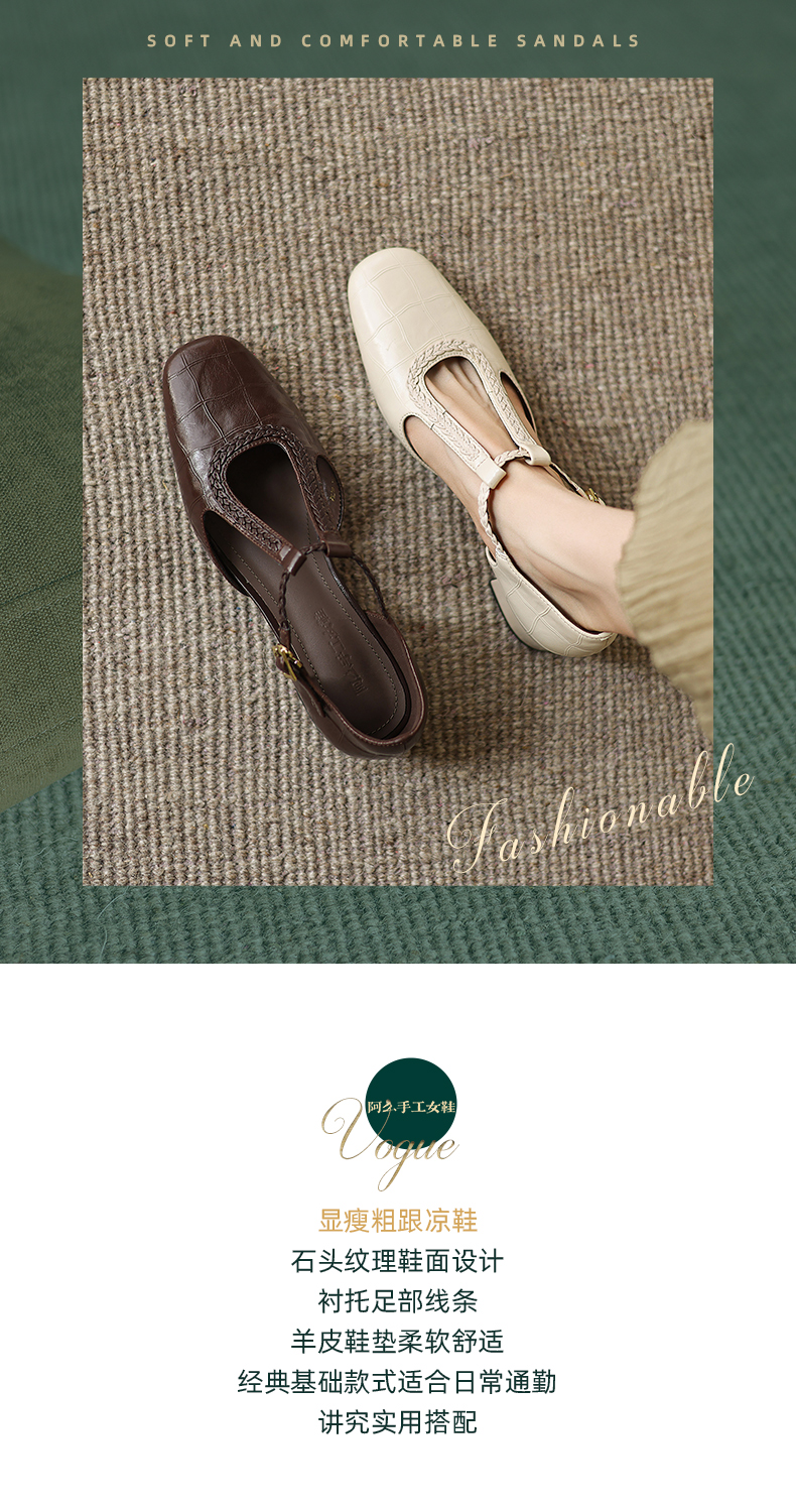阿么手工女鞋方头编织凉鞋粗跟3CM2025夏季新款浅口复古玛丽珍鞋