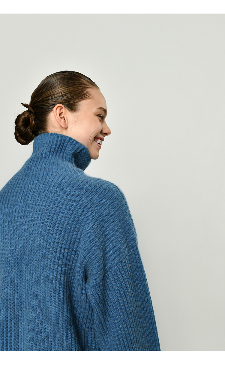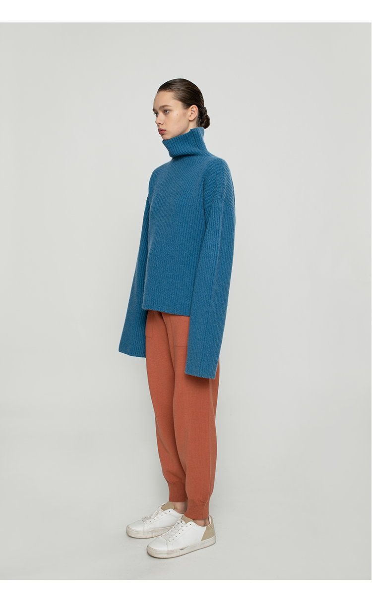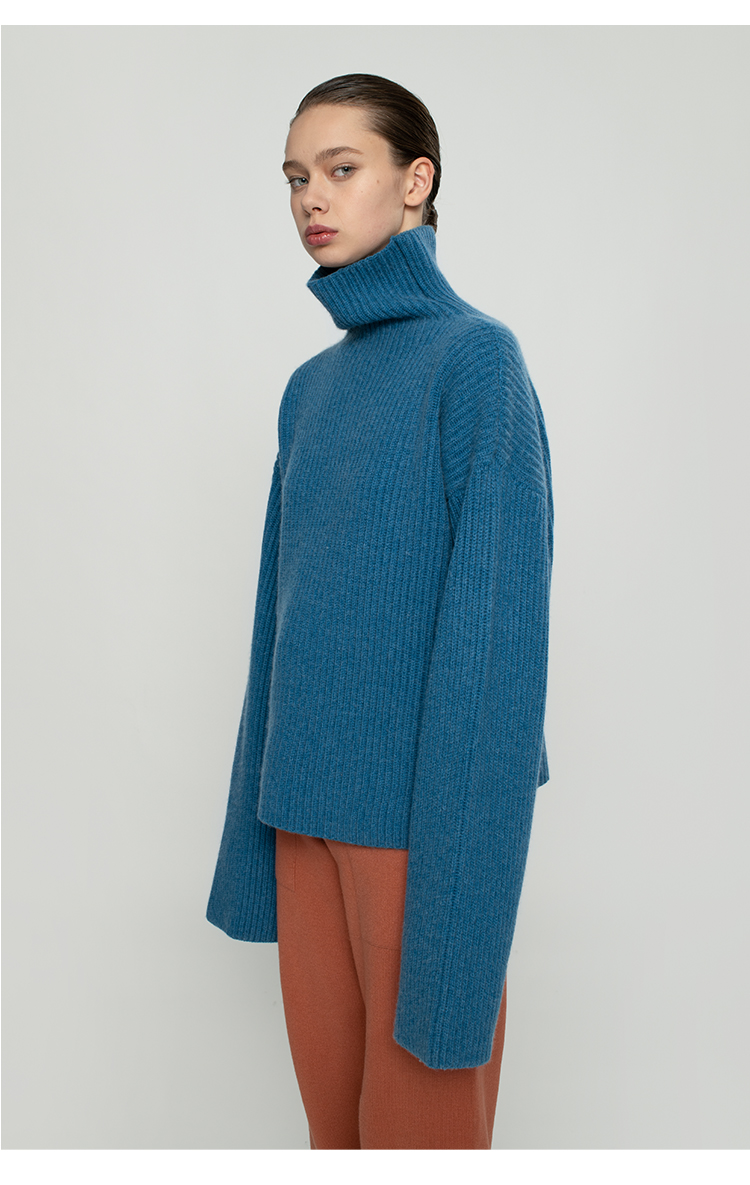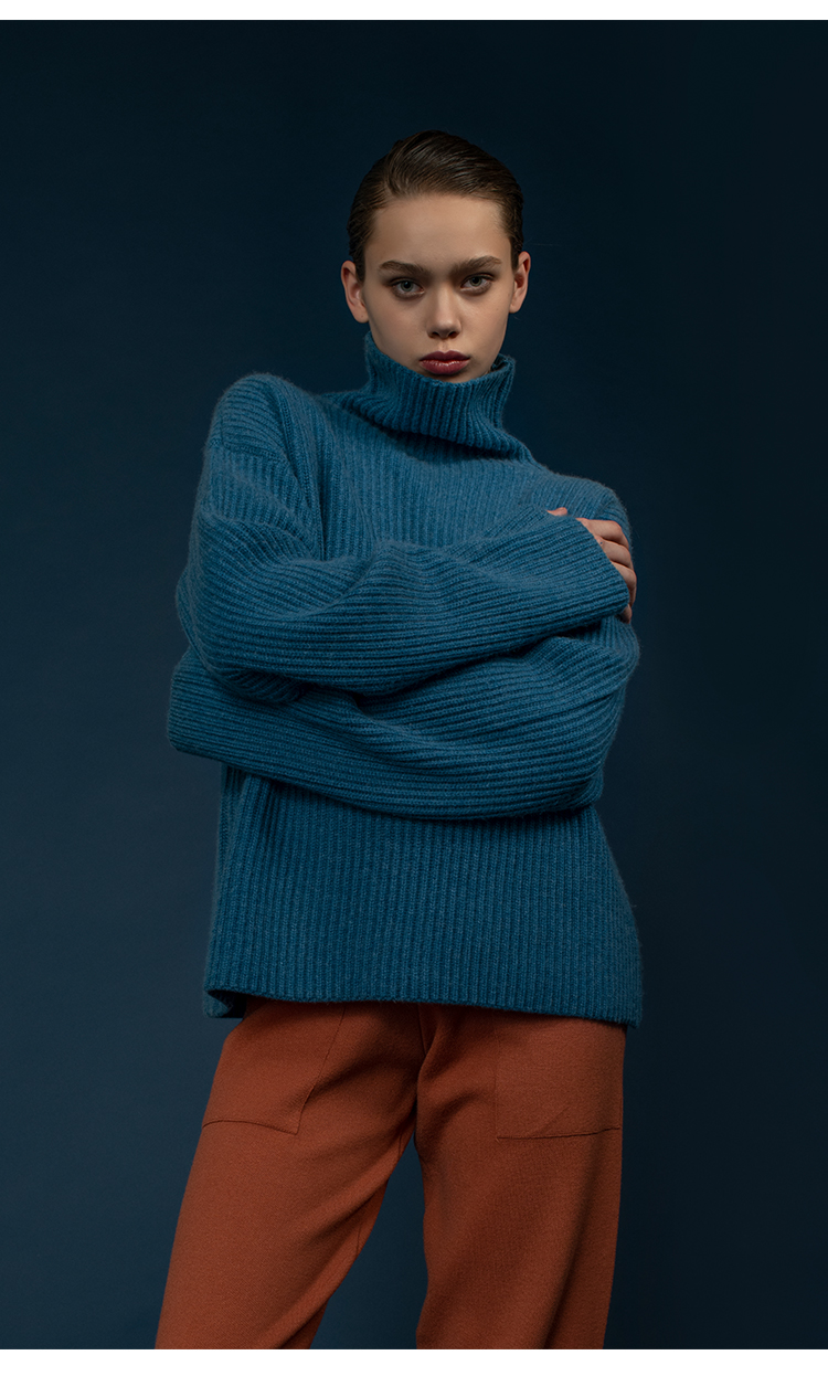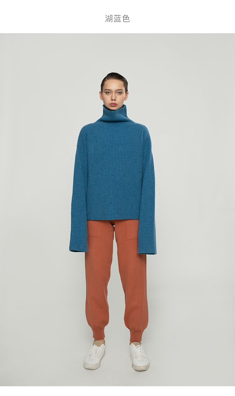 322工房纯羊绒衫女新款冬纯色高领加厚宽松廓形慵懒风针织衫毛衣