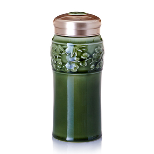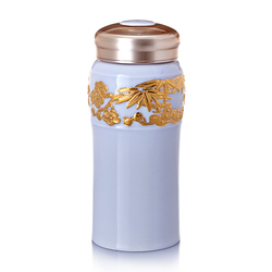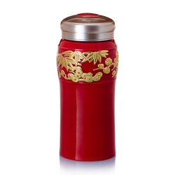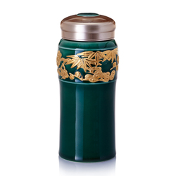 【乾唐轩官方旗舰店】活瓷 鎏金松竹梅随身杯双层 陶瓷保温水杯子商务送礼品领导