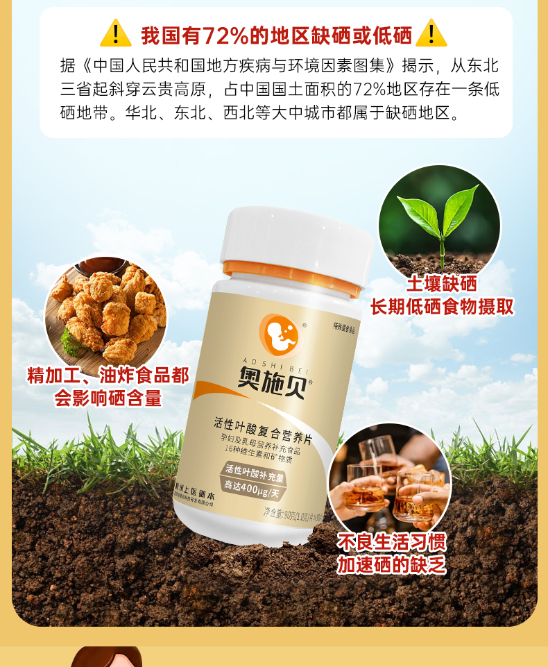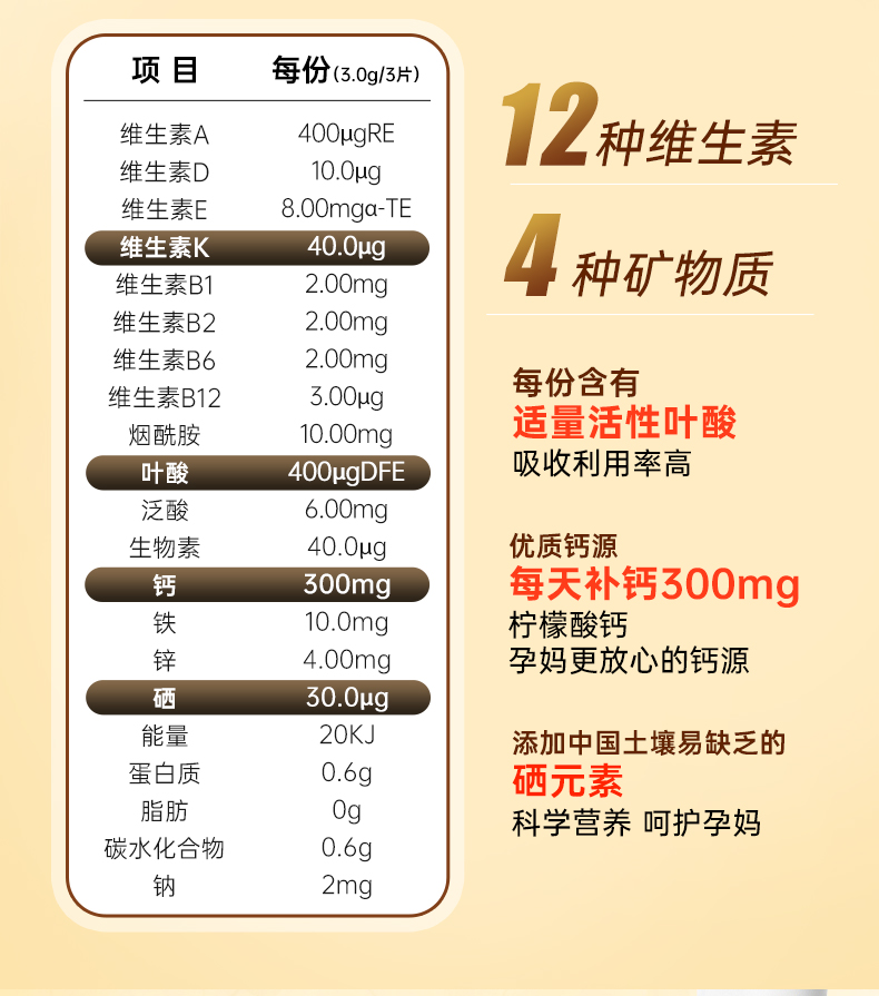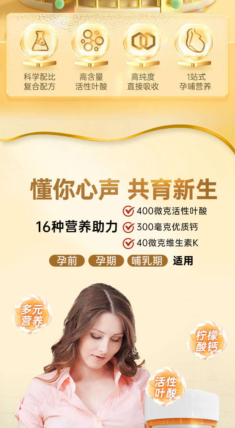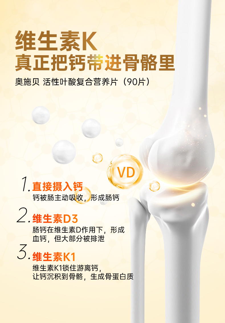 奥施贝活性叶酸复合营养片 有机钙维K维D 孕妇乳母特膳16种营养素