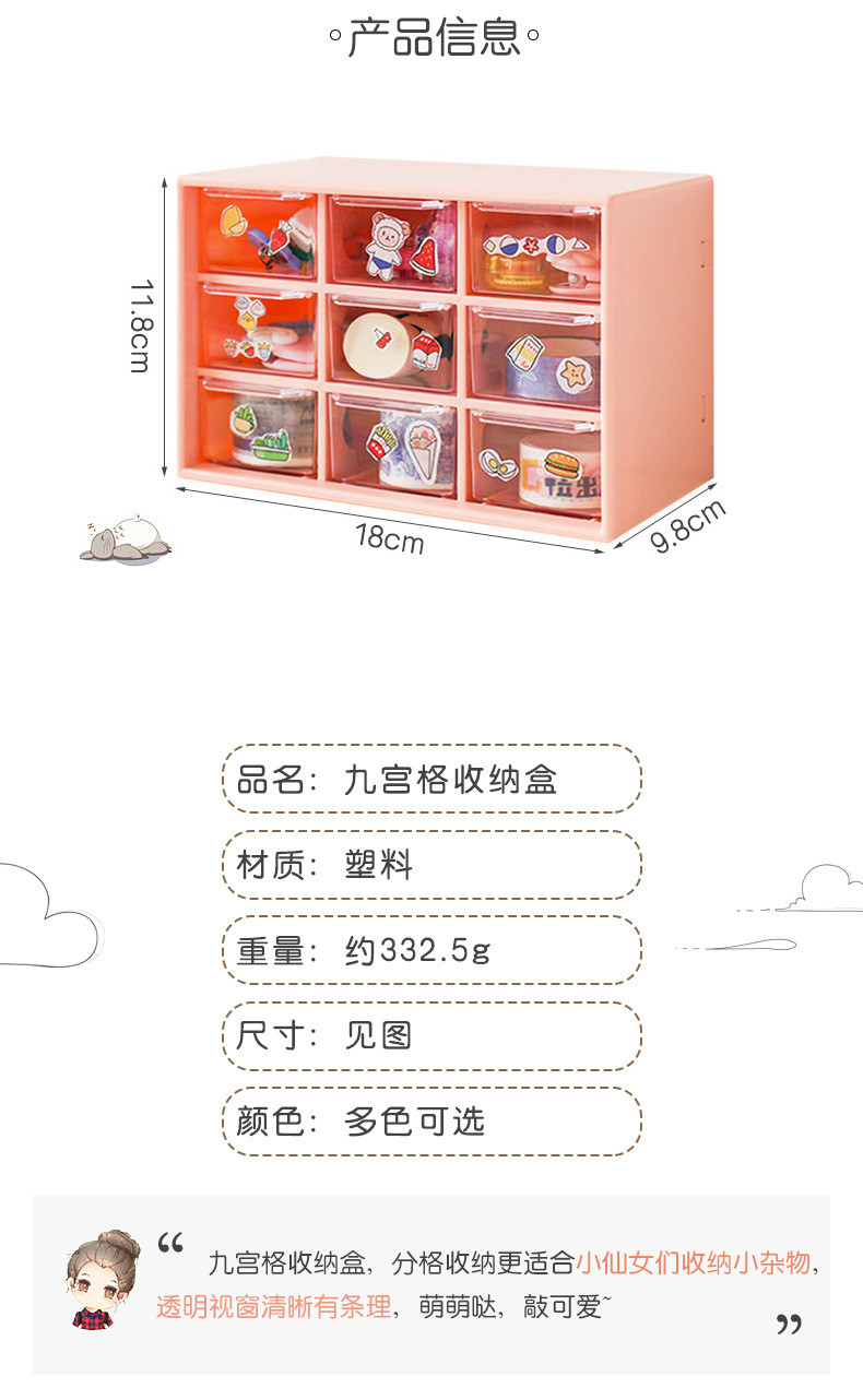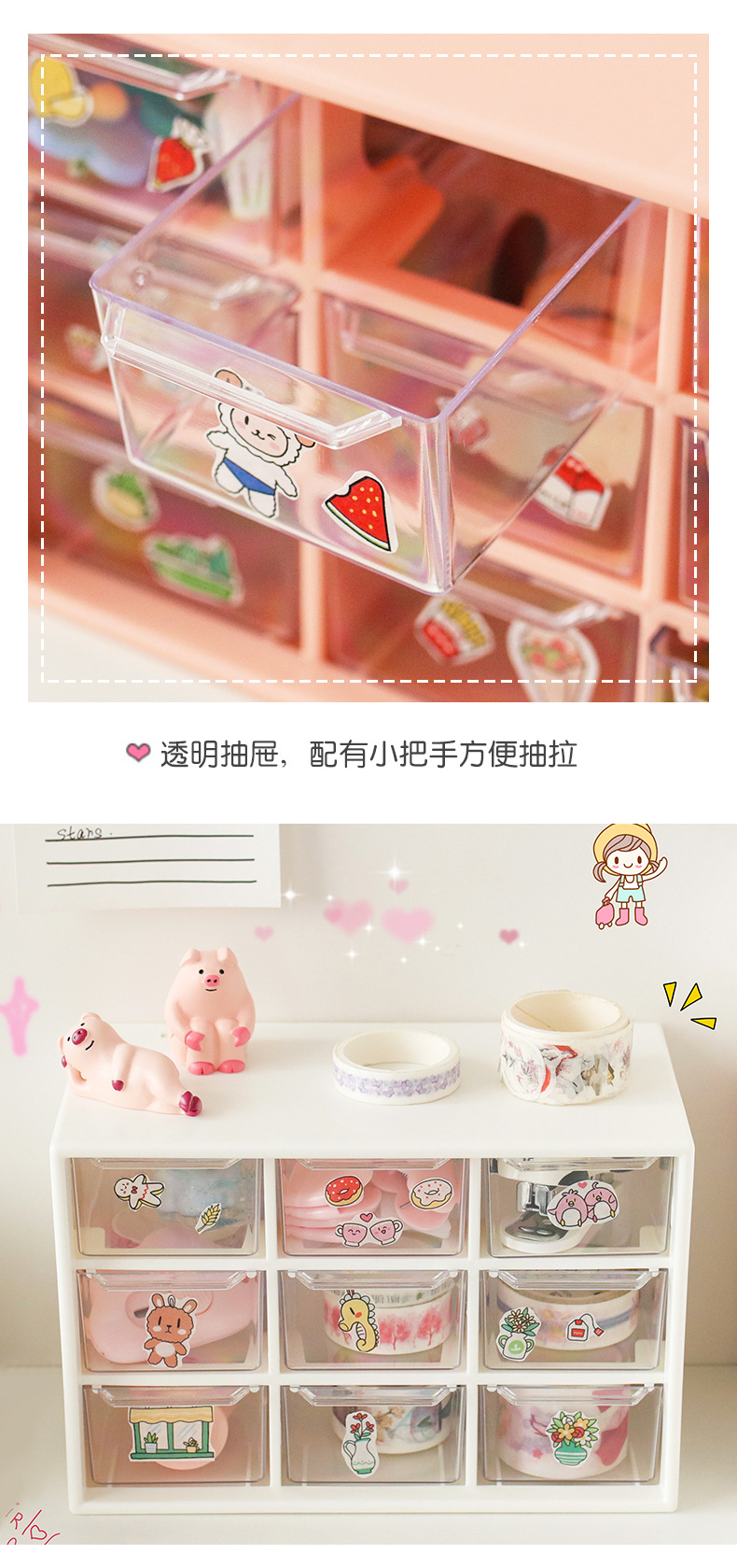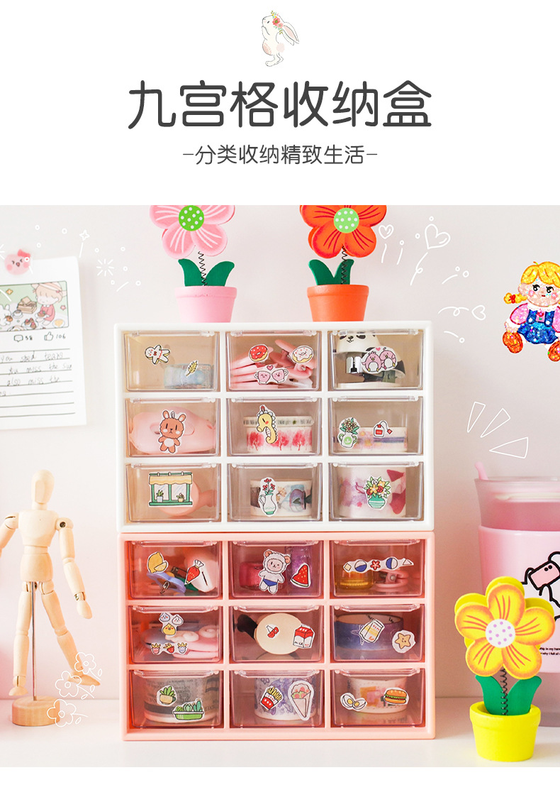 【九宫格收纳盒】ins风桌面透明抽屉式寝室文具首饰收纳整理盒
