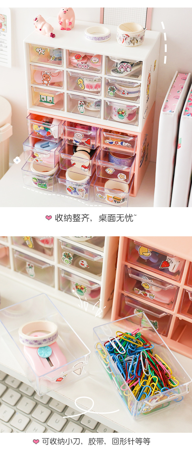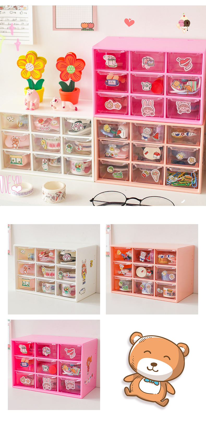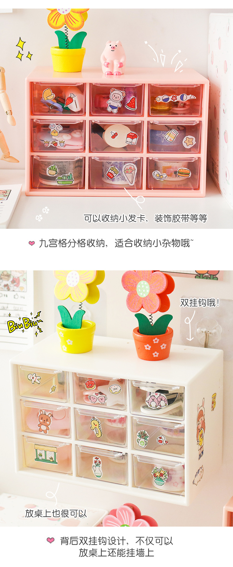 【九宫格收纳盒】ins风桌面透明抽屉式寝室文具首饰收纳整理盒