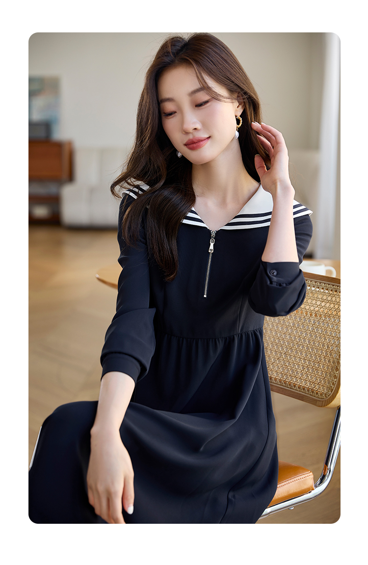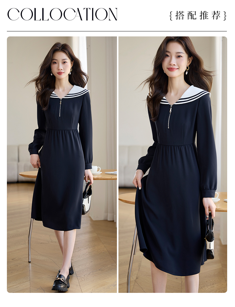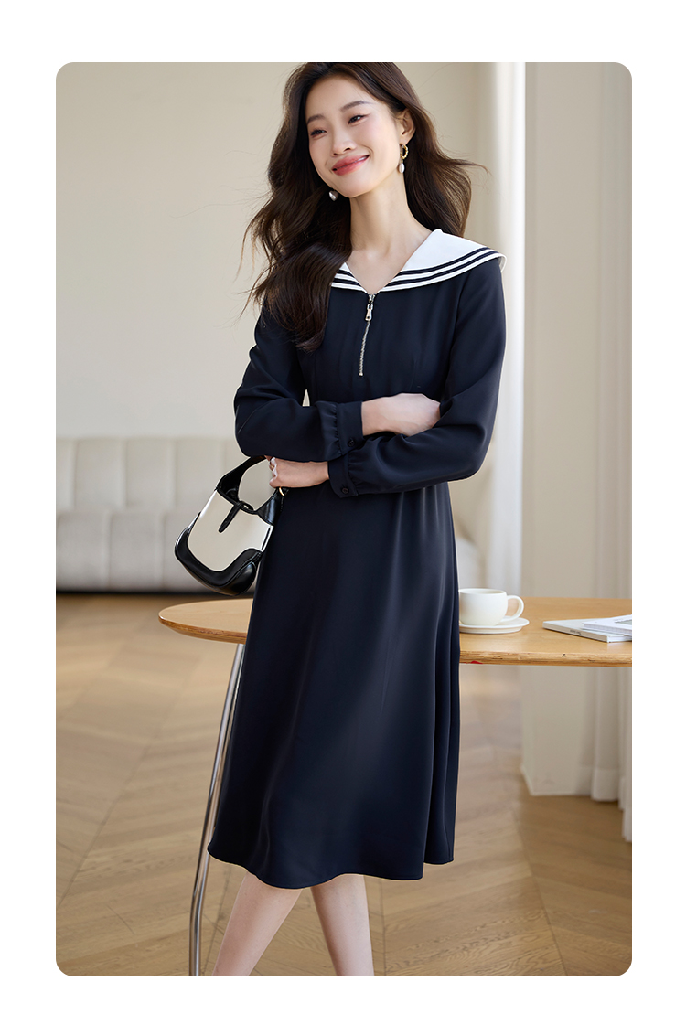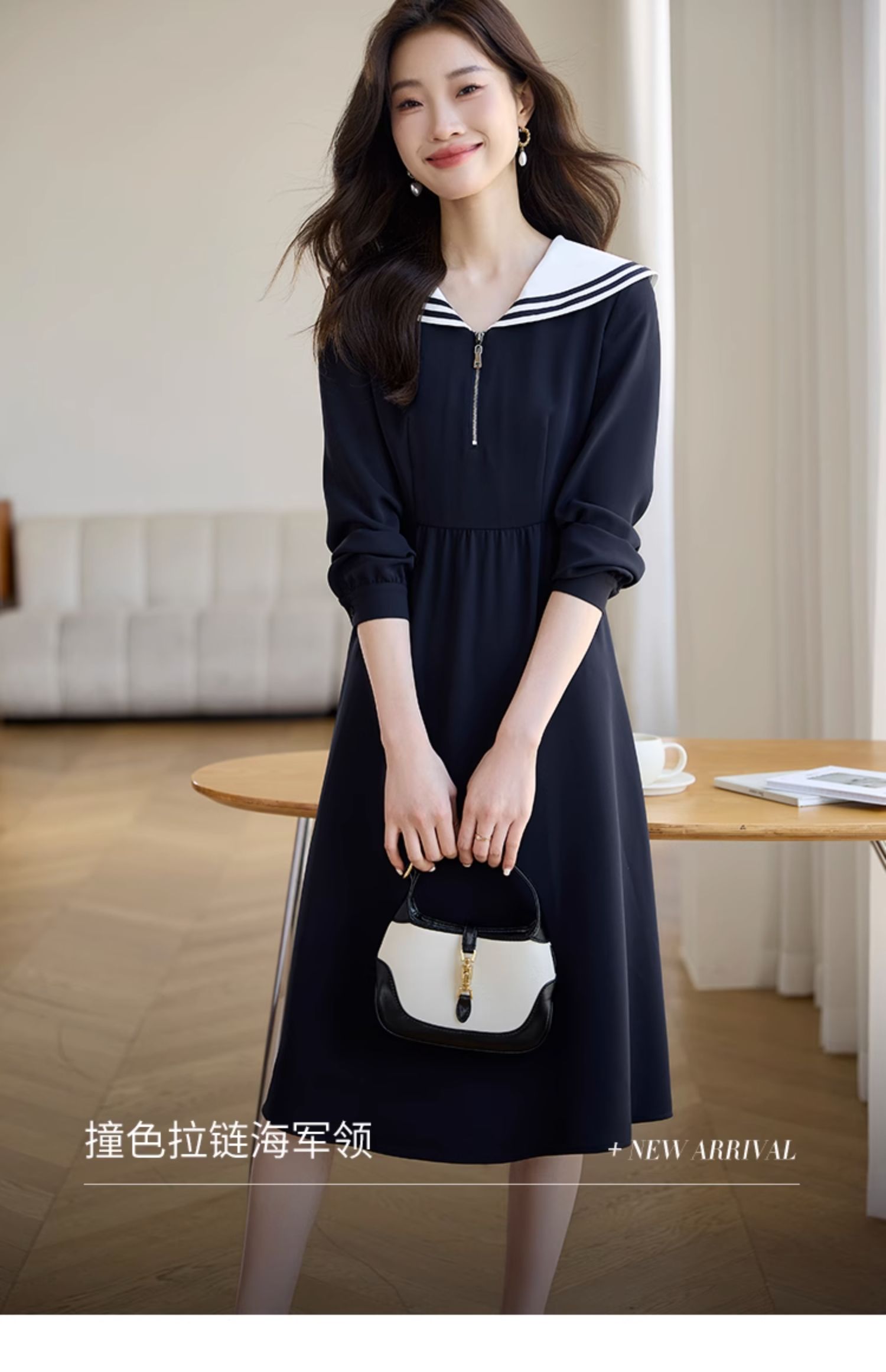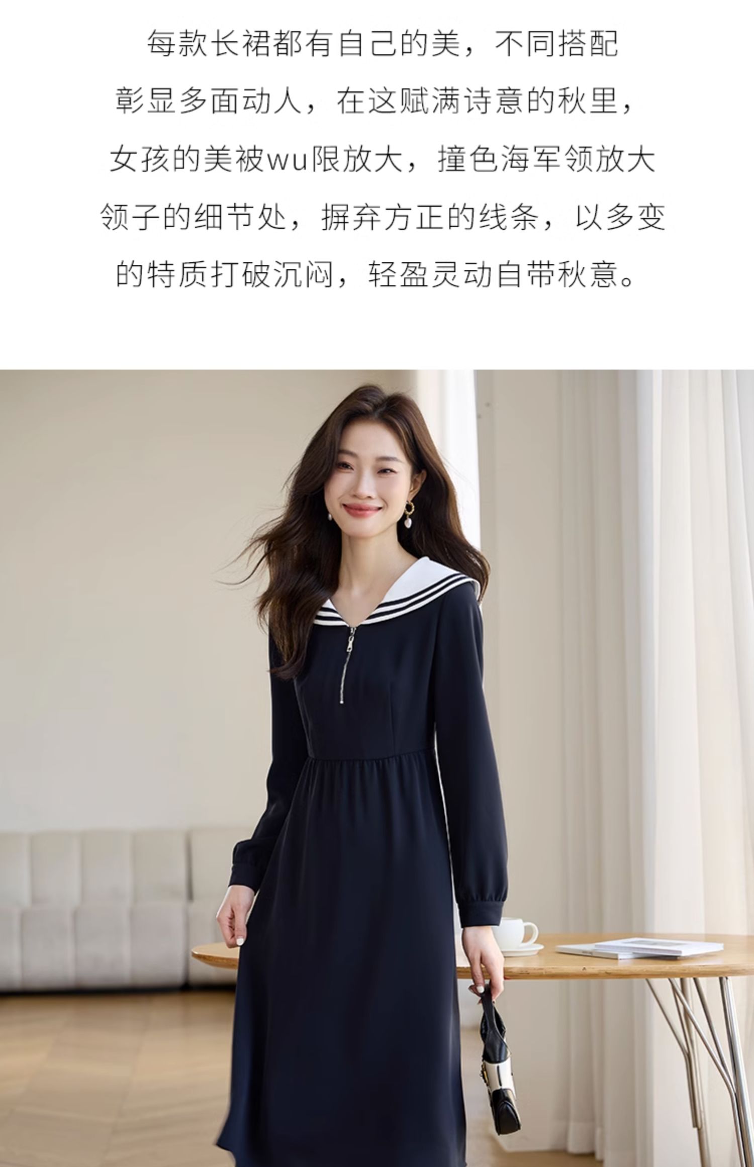 【专属特价】熙世界学院风撞色海军领连衣裙女2025年秋季新款收腰显瘦减龄裙子