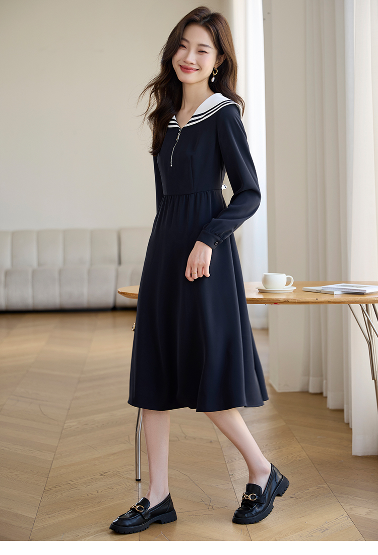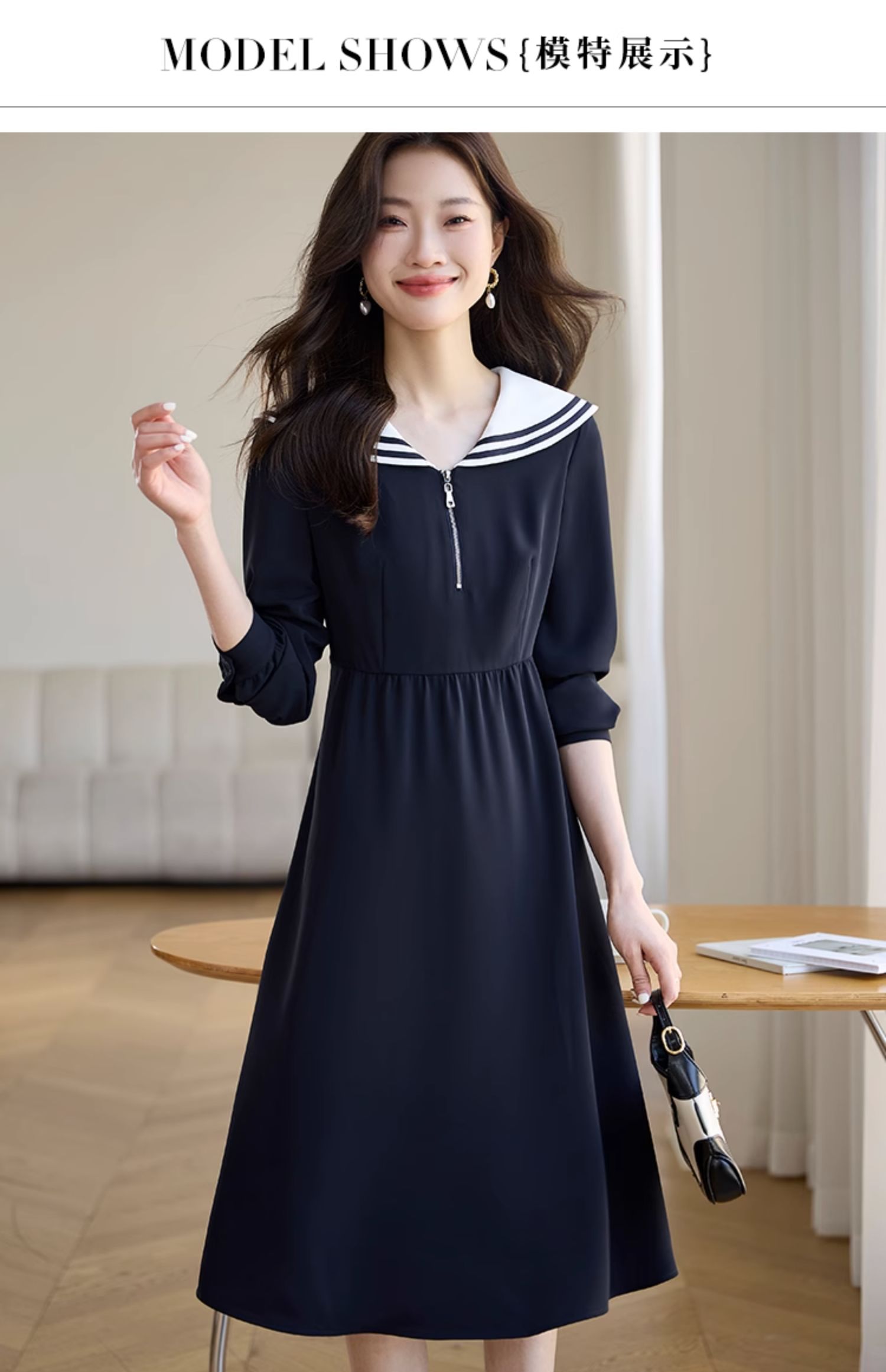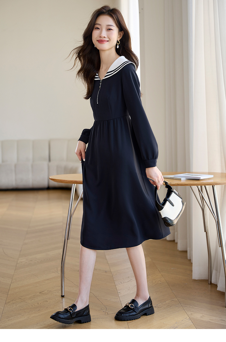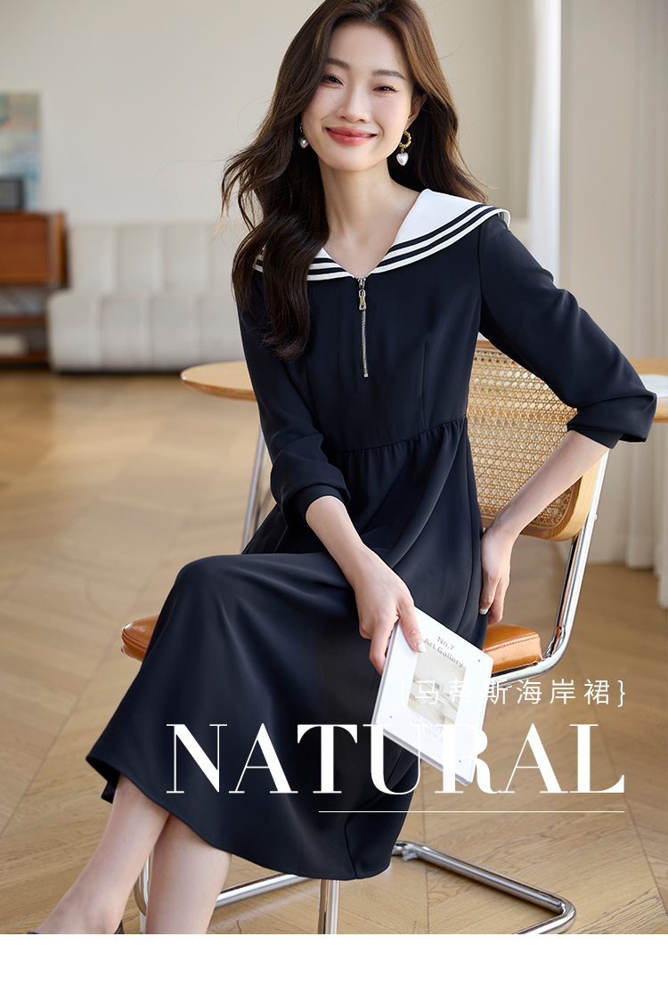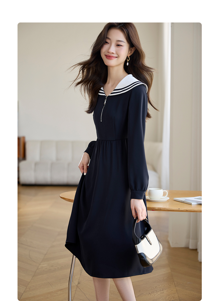 【专属特价】熙世界学院风撞色海军领连衣裙女2025年秋季新款收腰显瘦减龄裙子