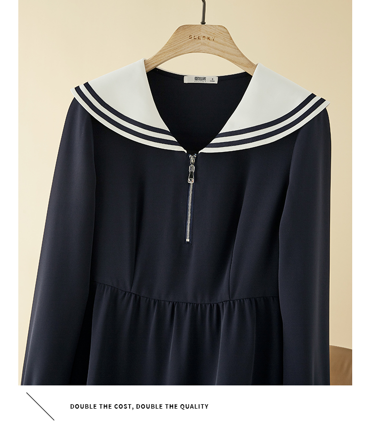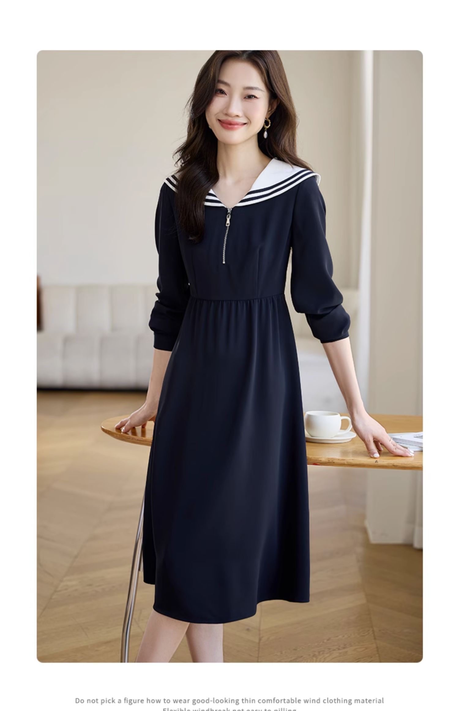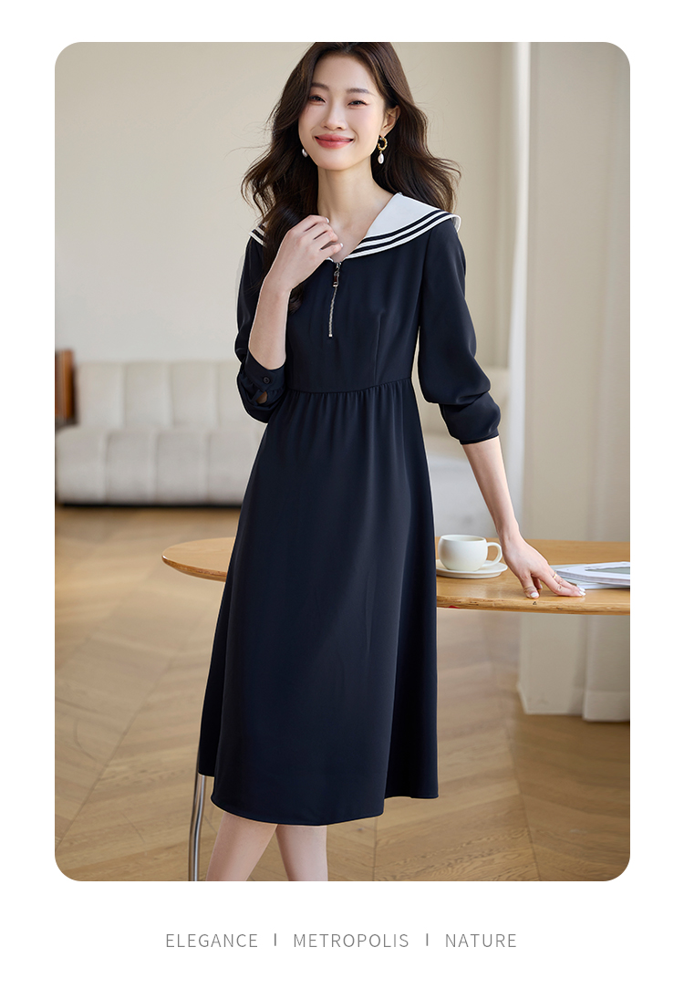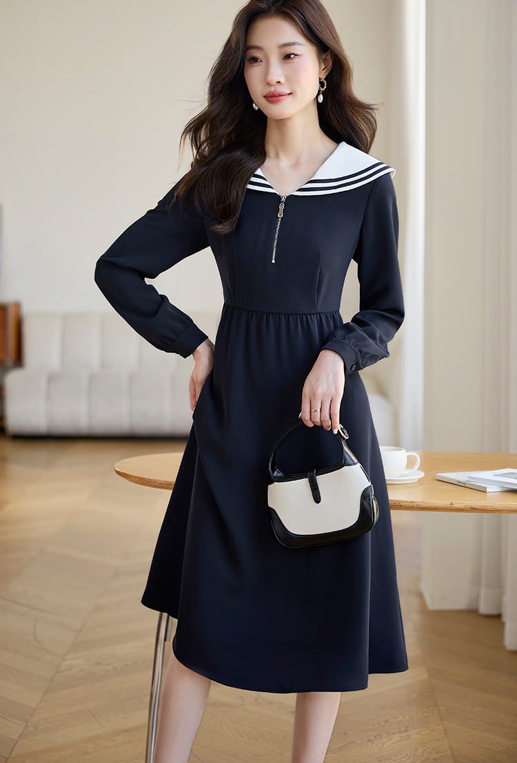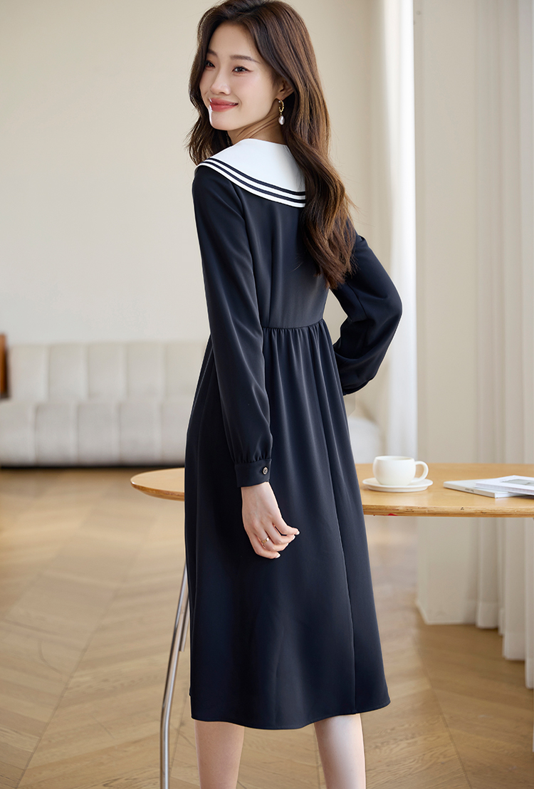 【专属特价】熙世界学院风撞色海军领连衣裙女2025年秋季新款收腰显瘦减龄裙子
