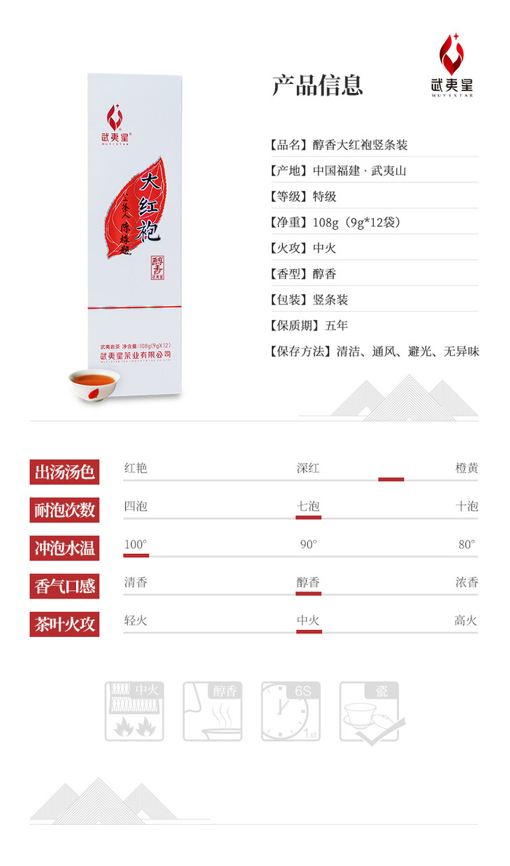武夷星 五香特级大红袍醇香108g武夷岩茶乌龙茶茶叶武夷山 A1519