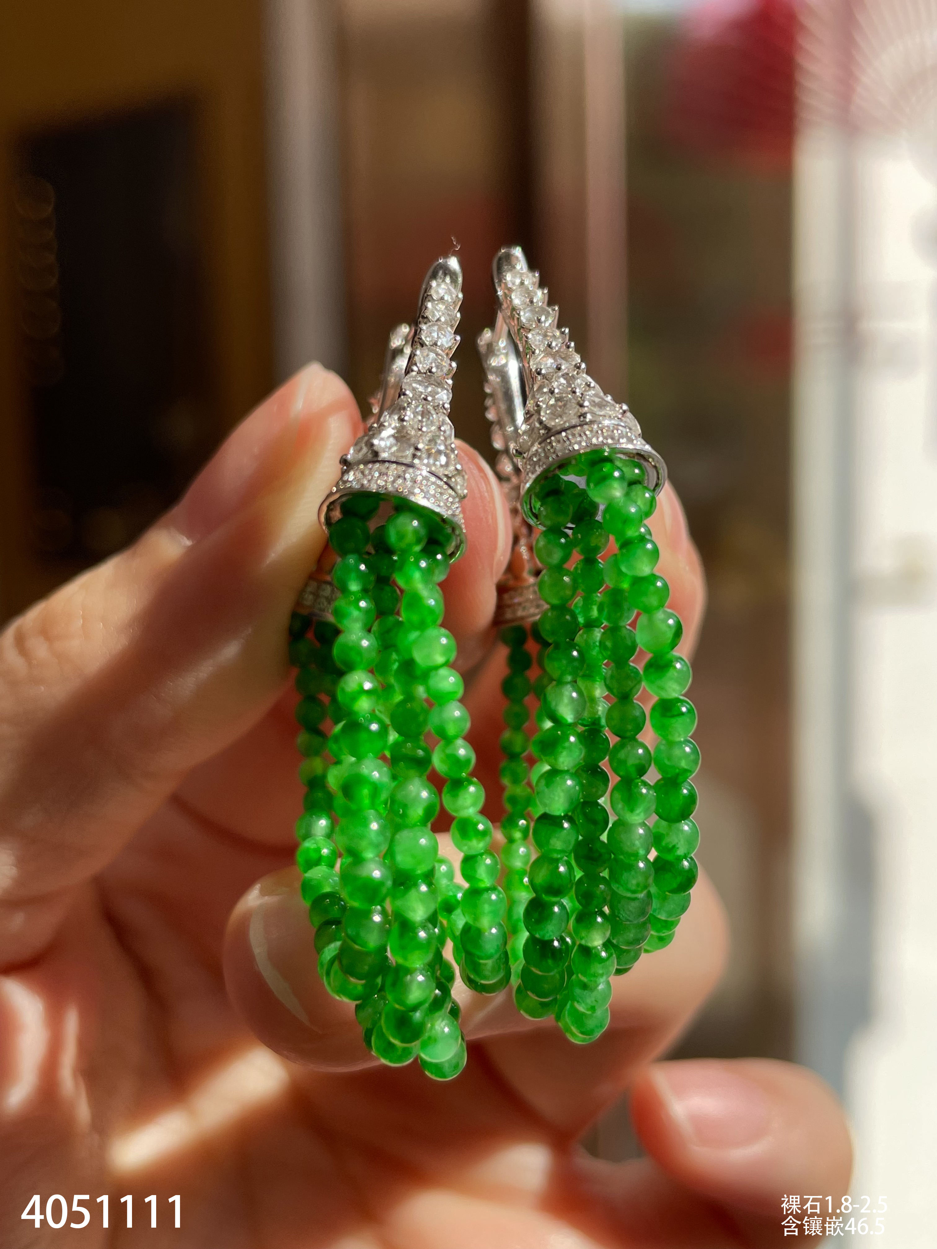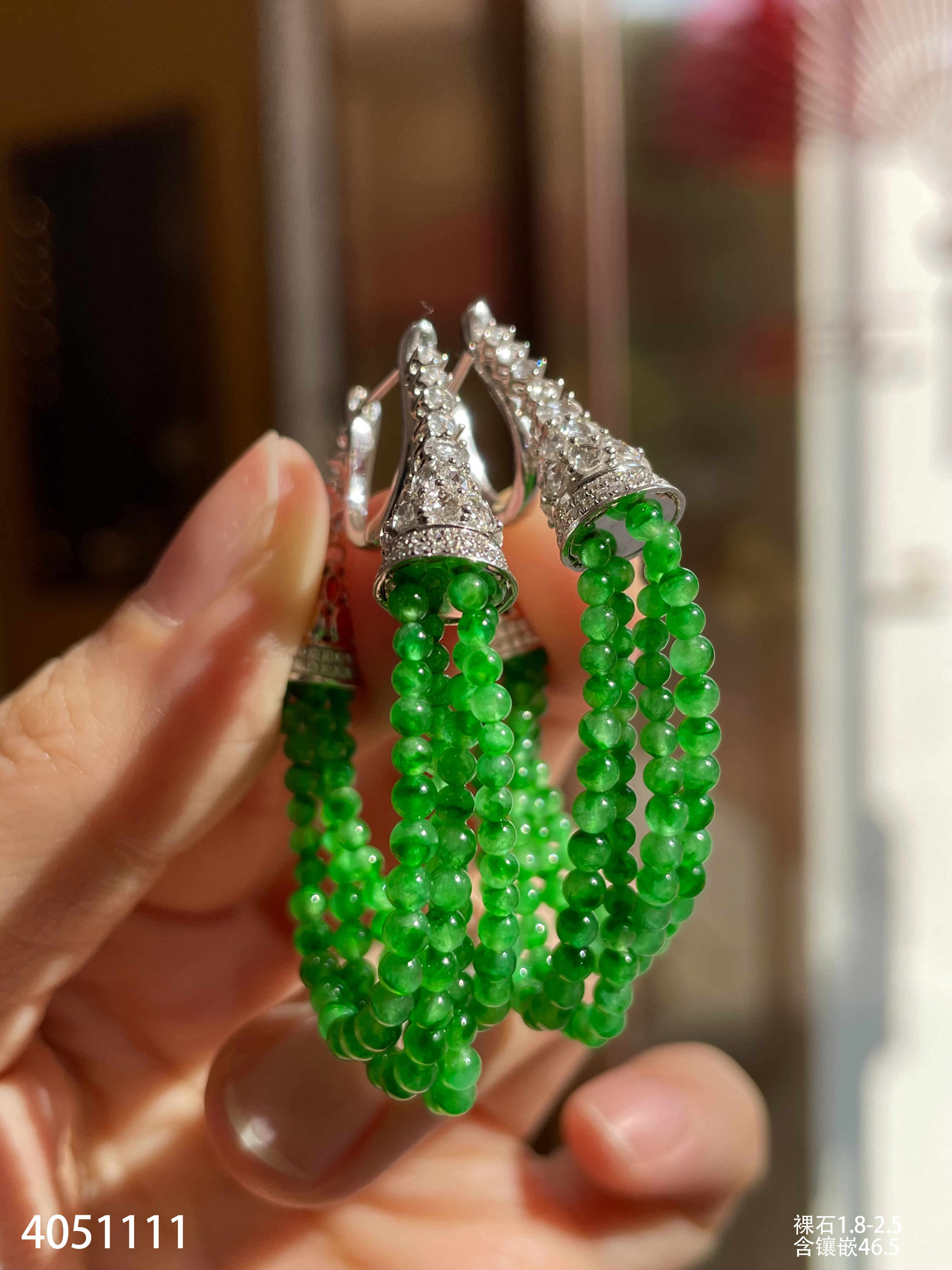 28-1063005,冰种艳绿珠链。具体价格微信咨询