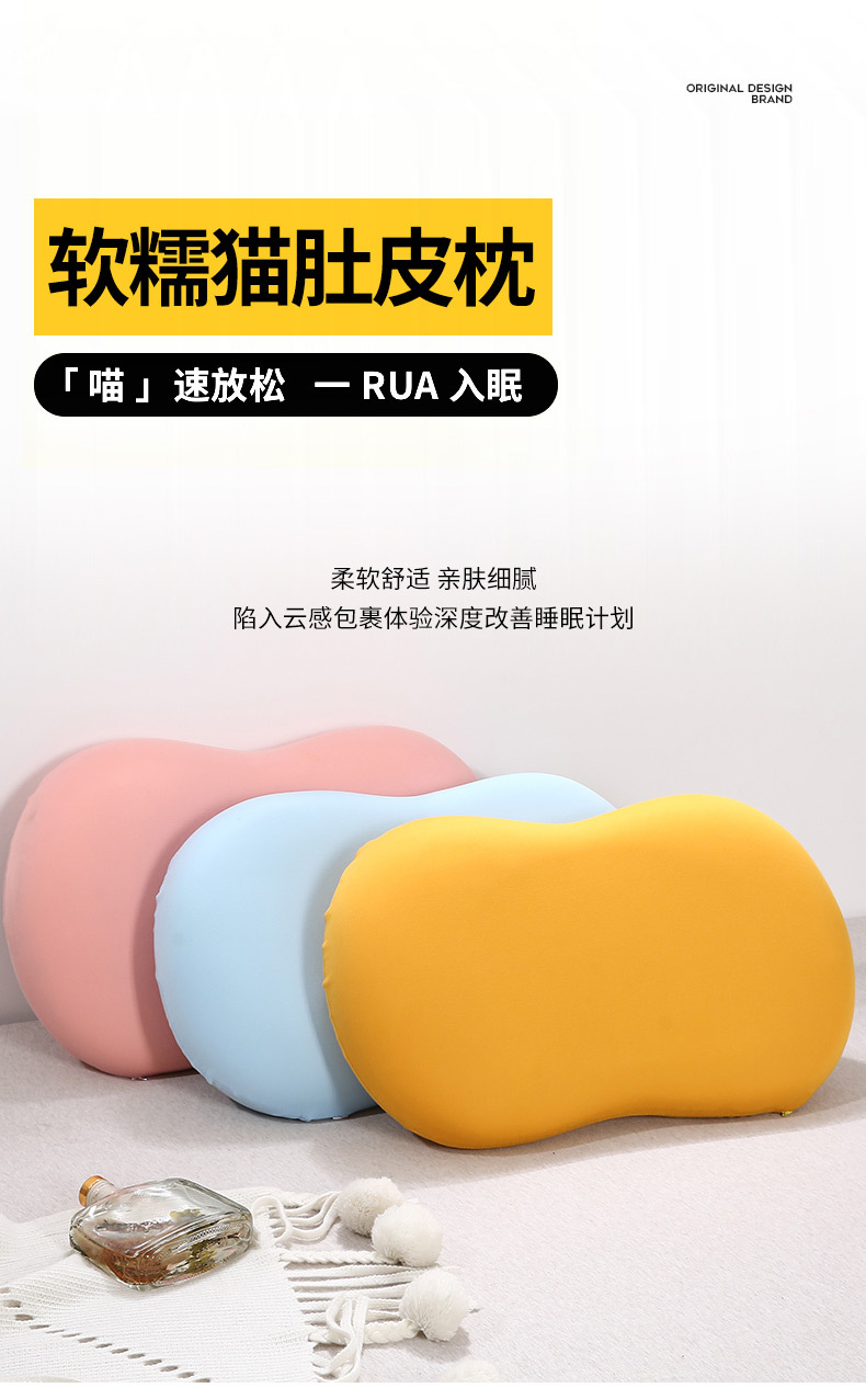 「29.9包邮!拼团同款」猫肚子枕头 护颈枕芯助睡眠颈椎枕针织柔软记忆枕猫肚皮枕头床上用品