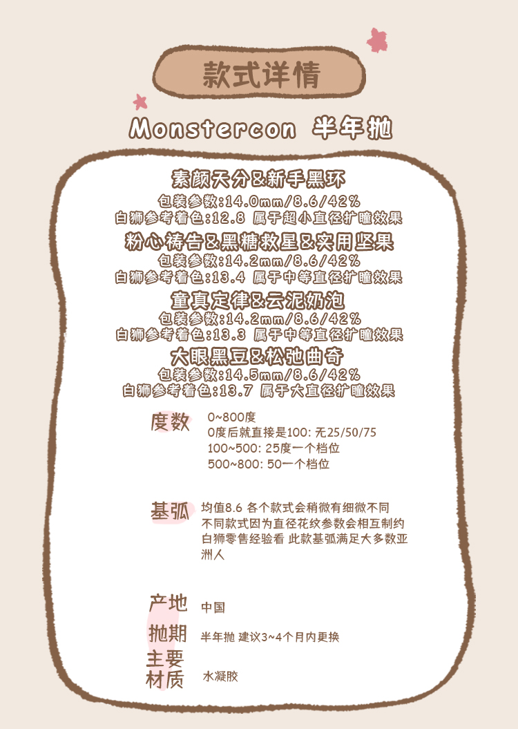Monstercon旗下 | 大眼黑豆&松弛曲奇 14.5mm白狮参考着色大直径 半年抛 2片