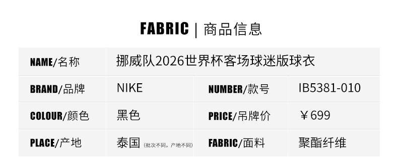 SFS耐克Nike 2026世界杯挪威客场球迷版球衣短袖足球服IB5381-010