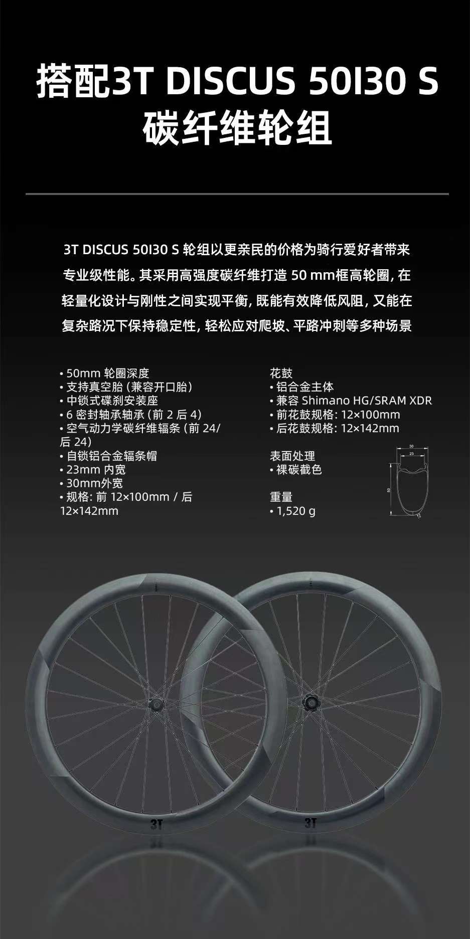 3T马卡龙系列灵跃 碳纤维搭配105大套一体把3T轮组 公路车