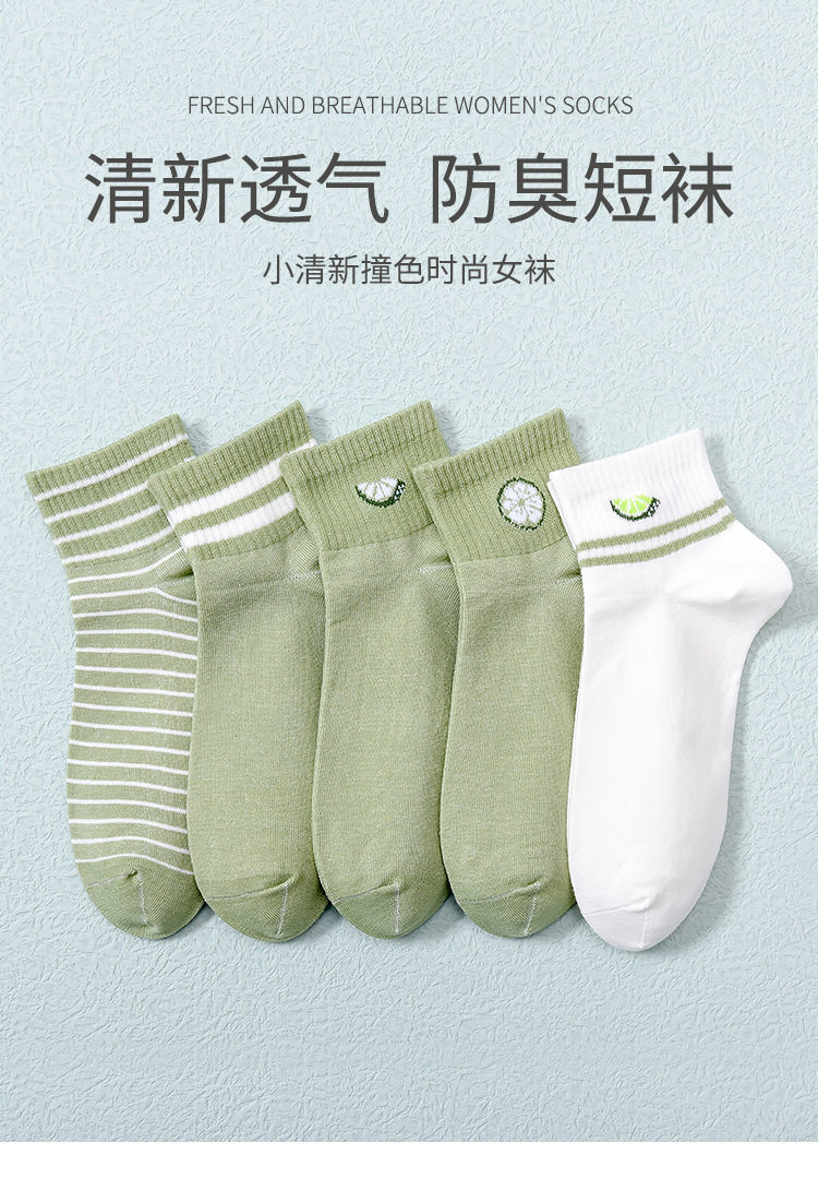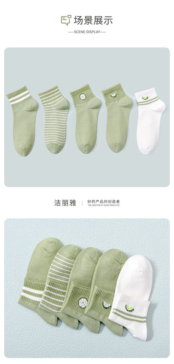 洁丽雅袜子女短袜纯棉春夏季夏天薄款女生学生短筒船袜不掉跟纯棉