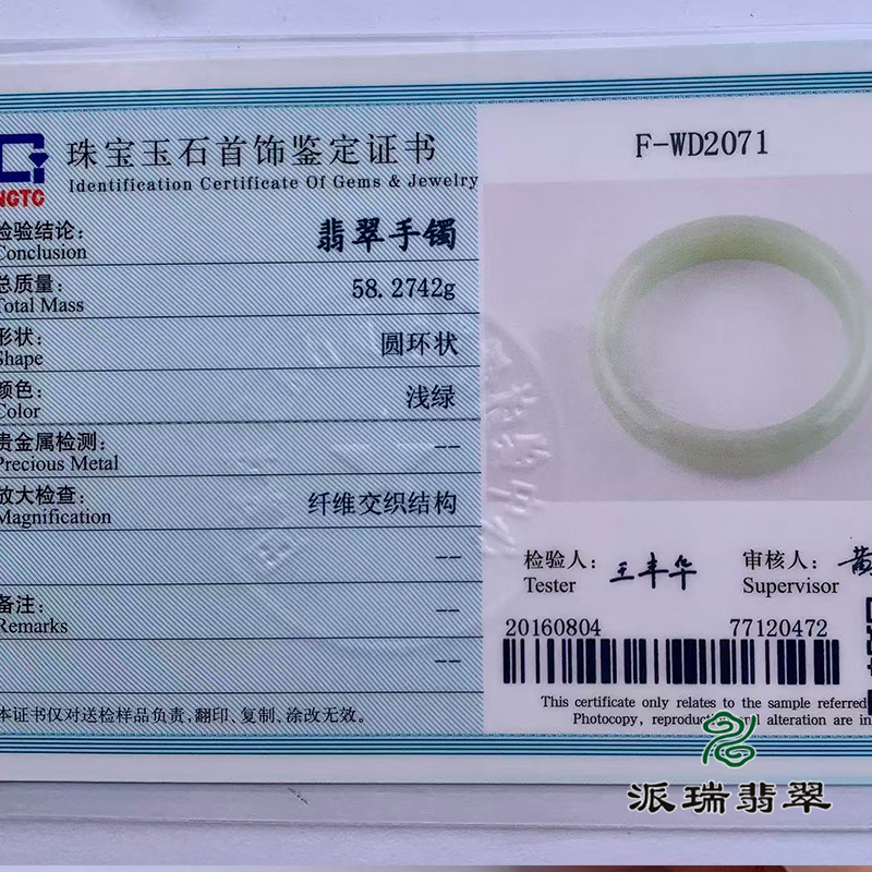 派瑞翡翠 翡翠手镯 糯种 浅绿