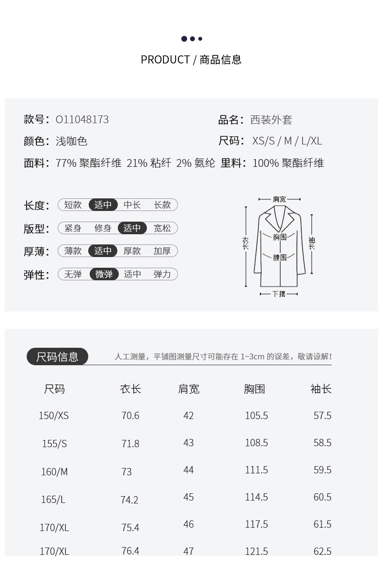 oldcolour2022春款新品中长款宽松西装外套O11048173