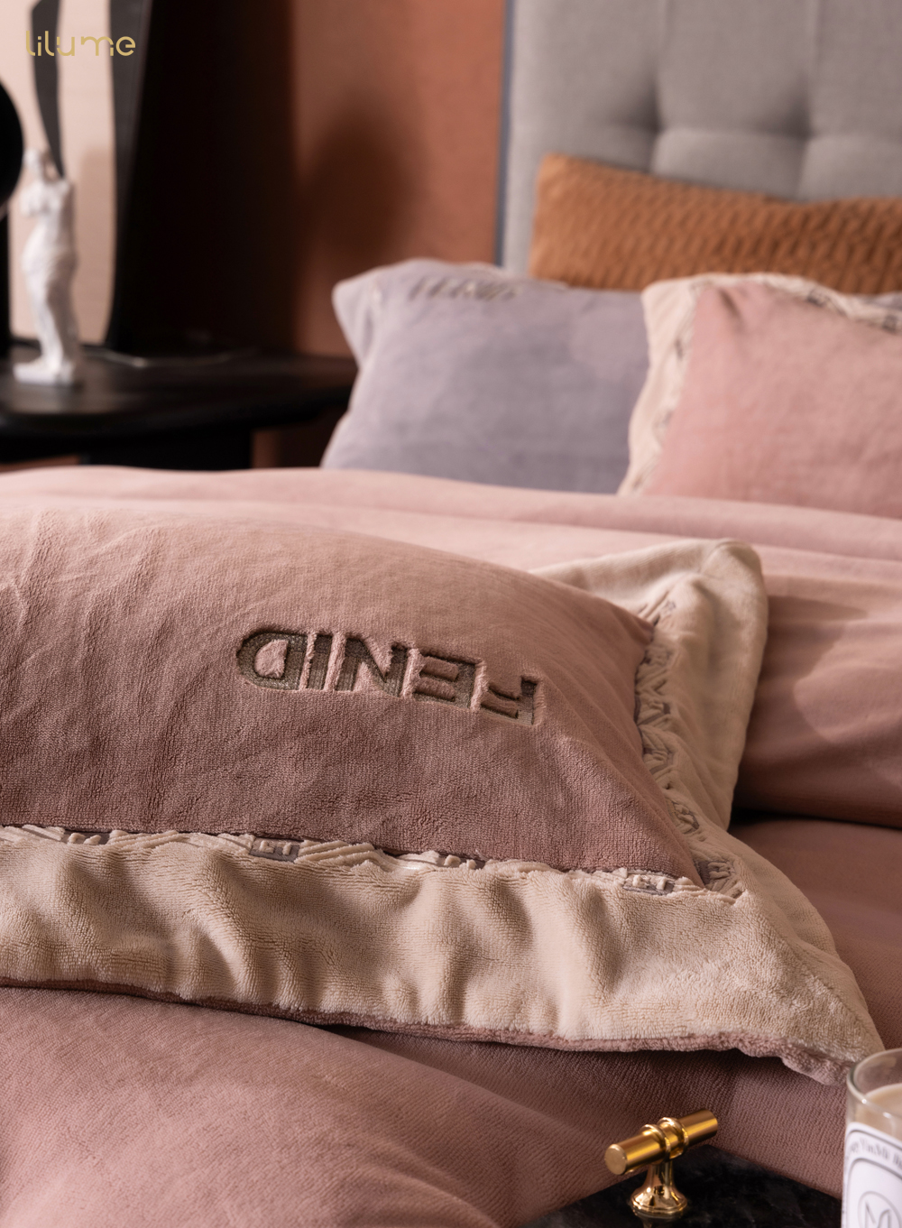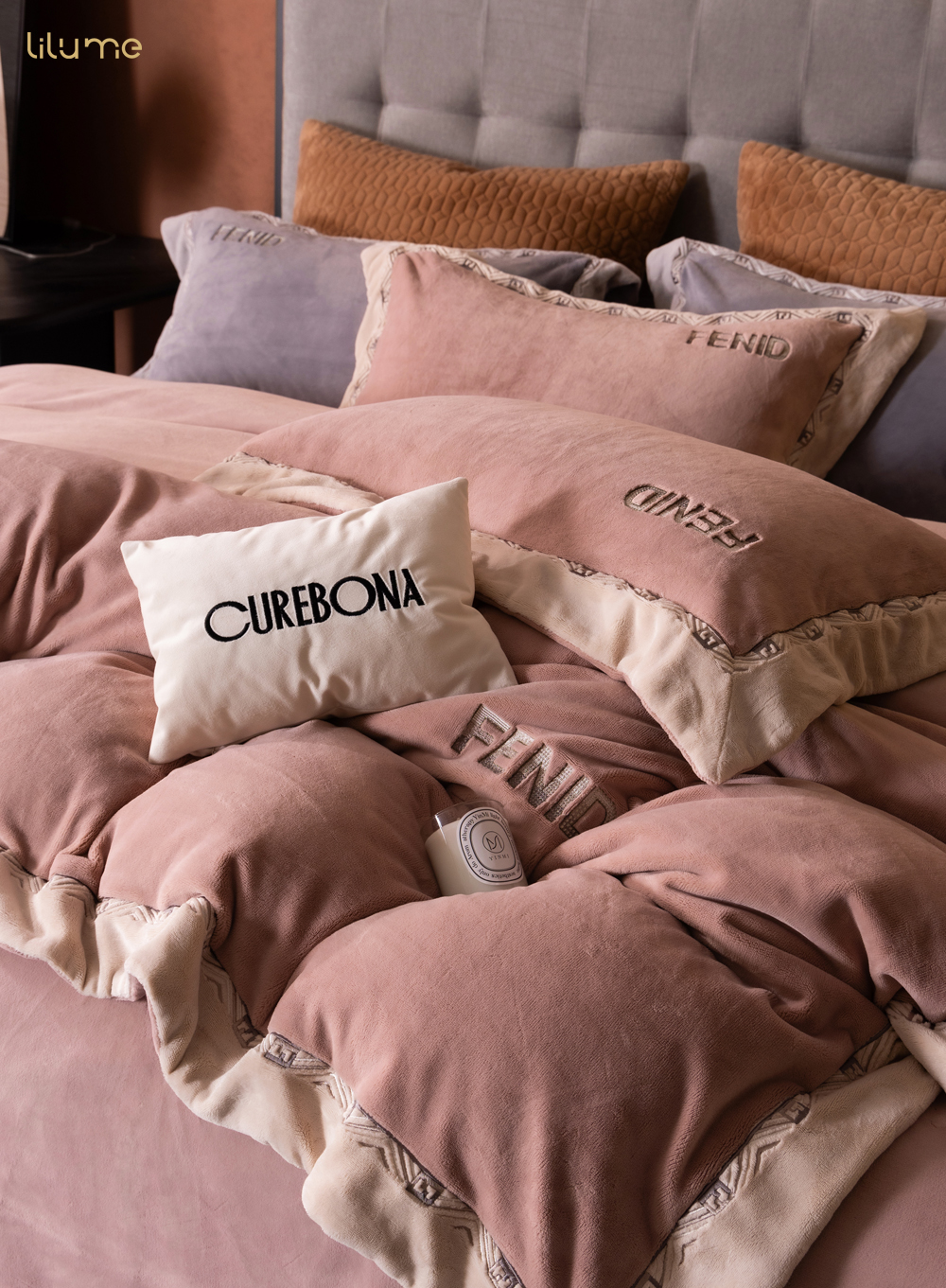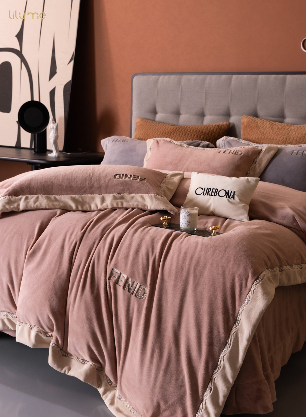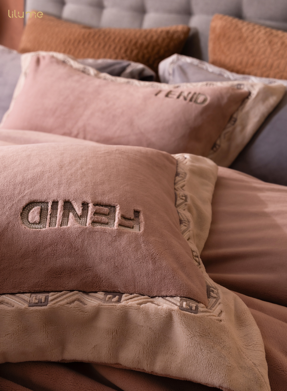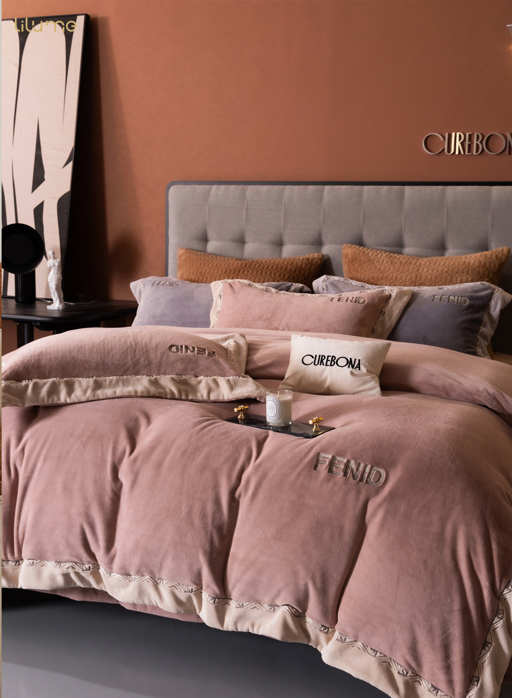 利路米秋季新款超细牛奶绒保暖四件套芬度茶红