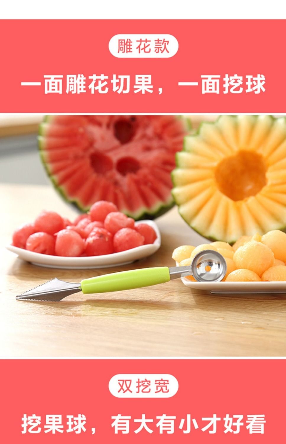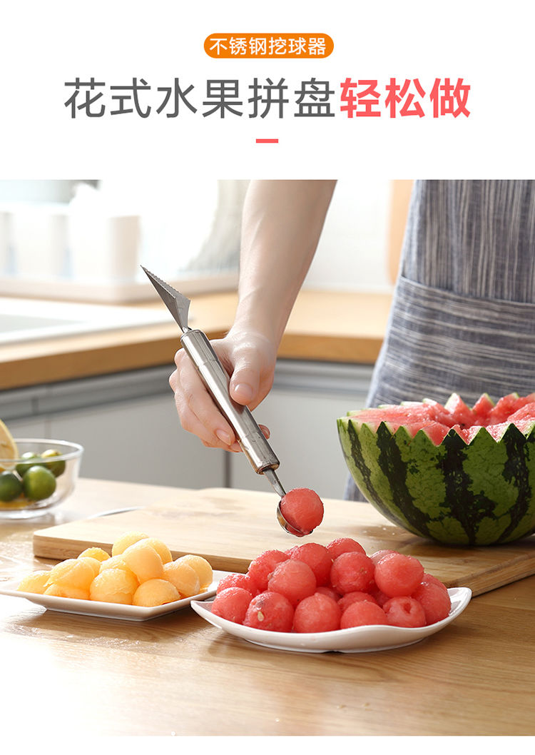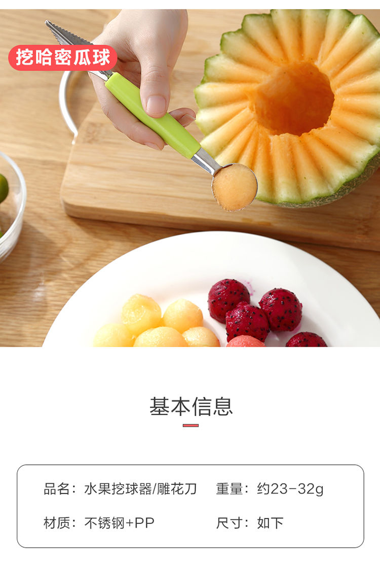【波纹雕花刀】居家日用双头不锈钢水果挖球器西瓜水果水果刀餐饮用具