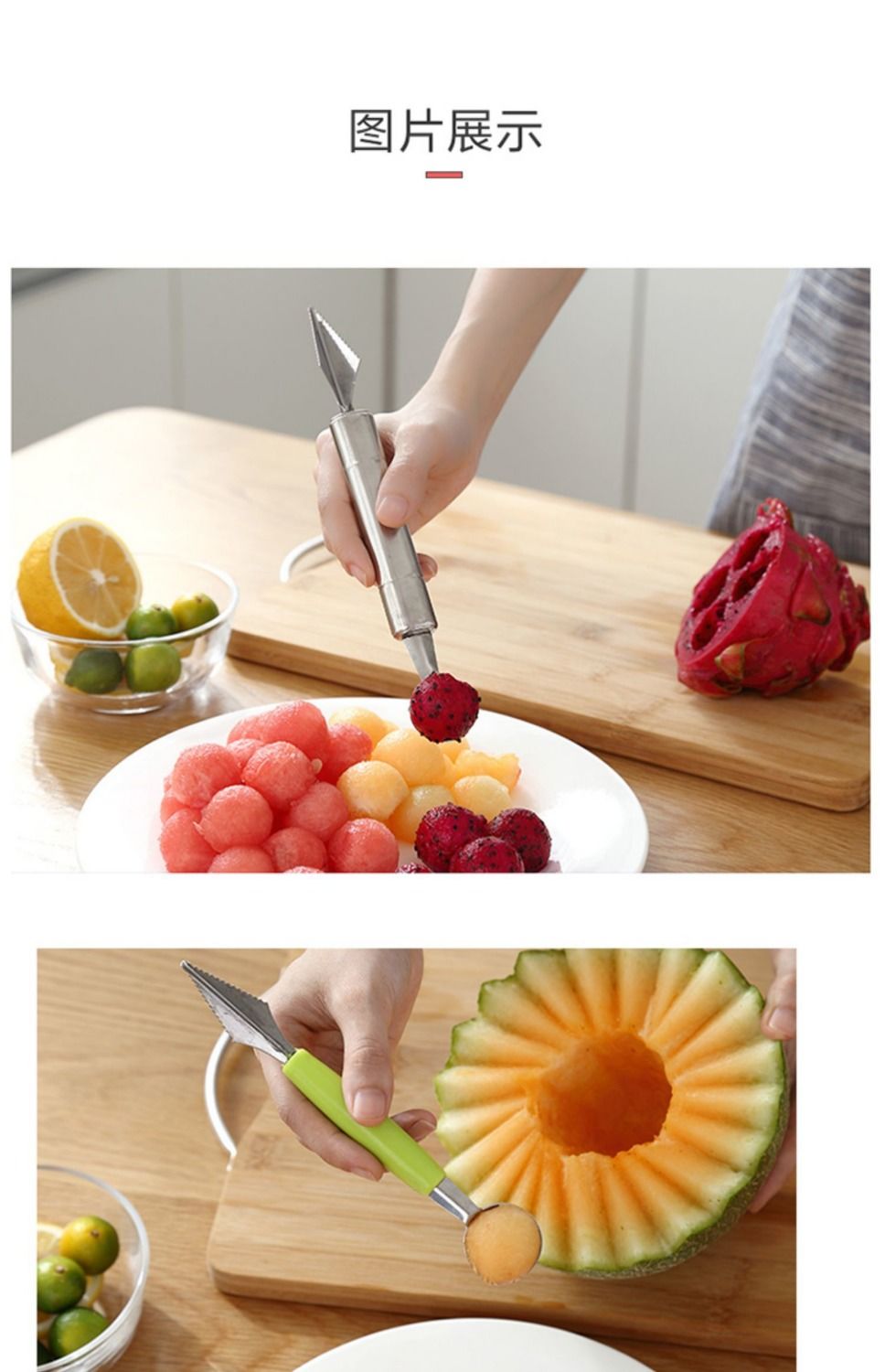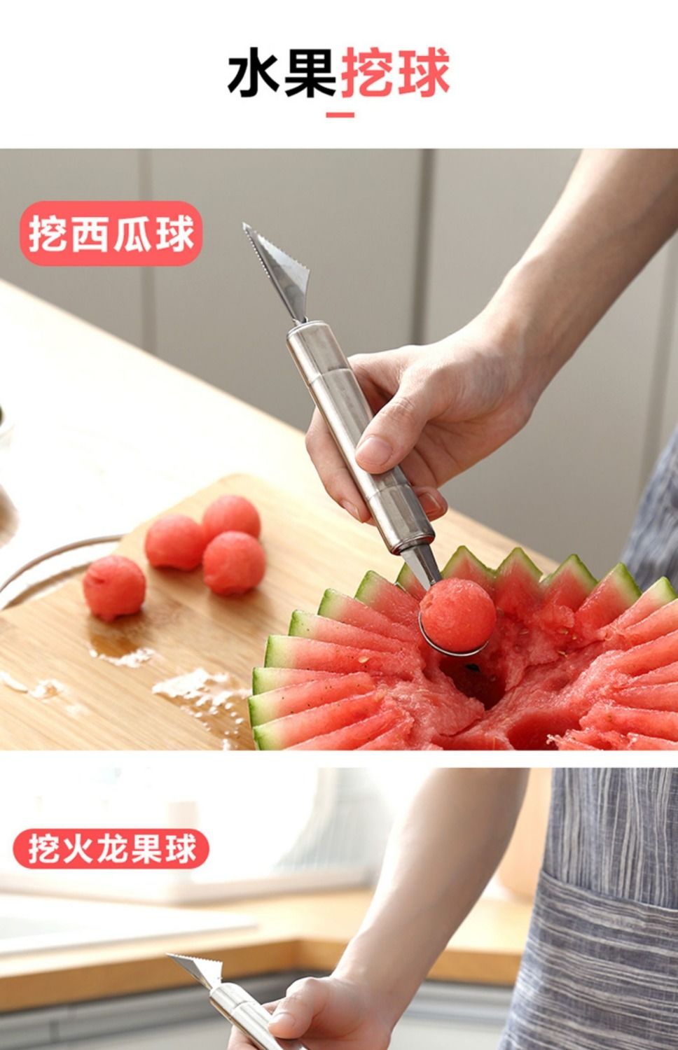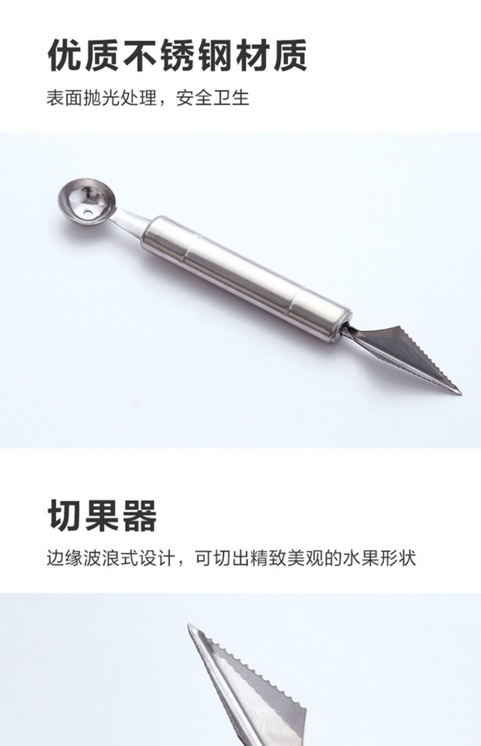 【波纹雕花刀】居家日用双头不锈钢水果挖球器西瓜水果水果刀餐饮用具