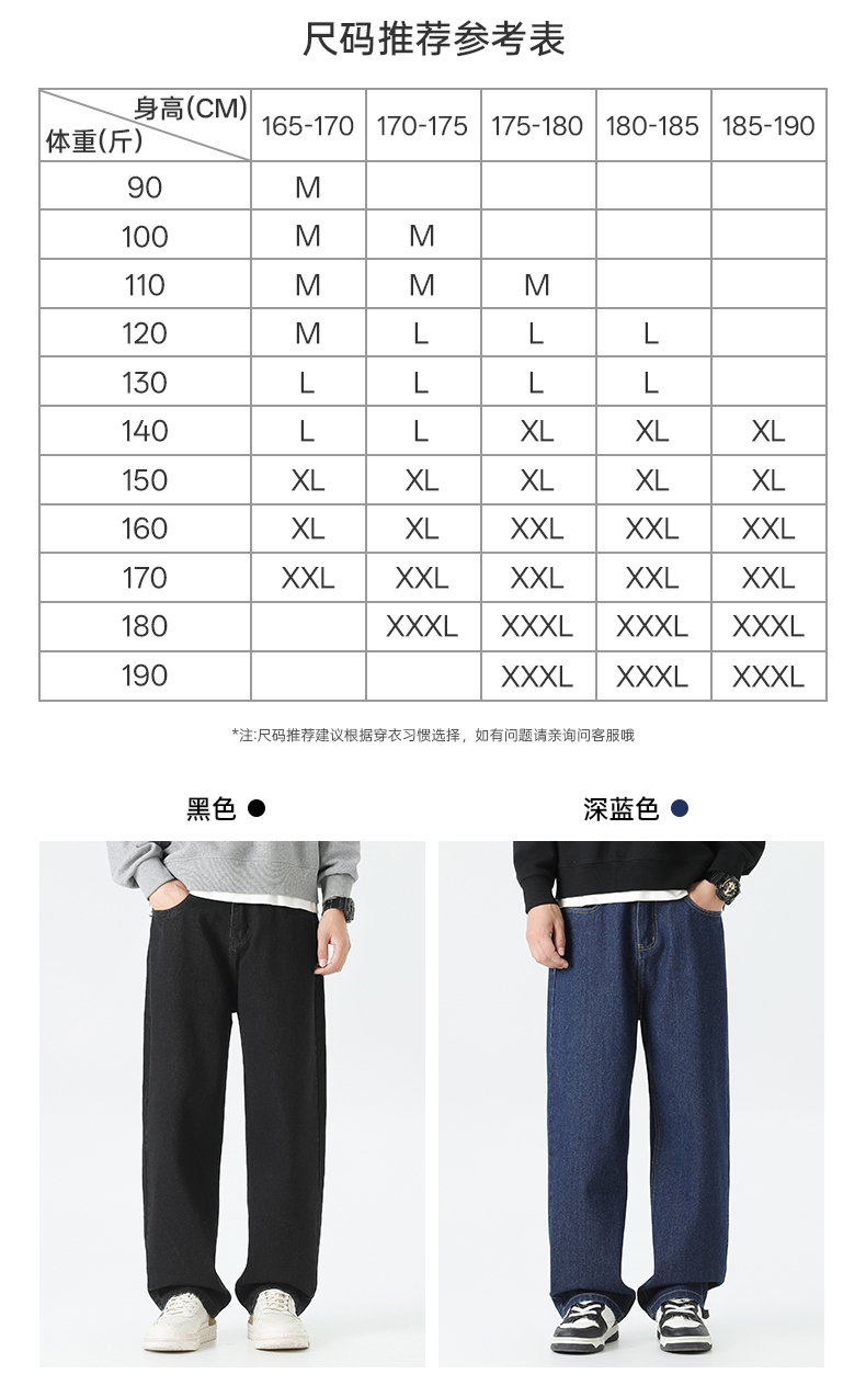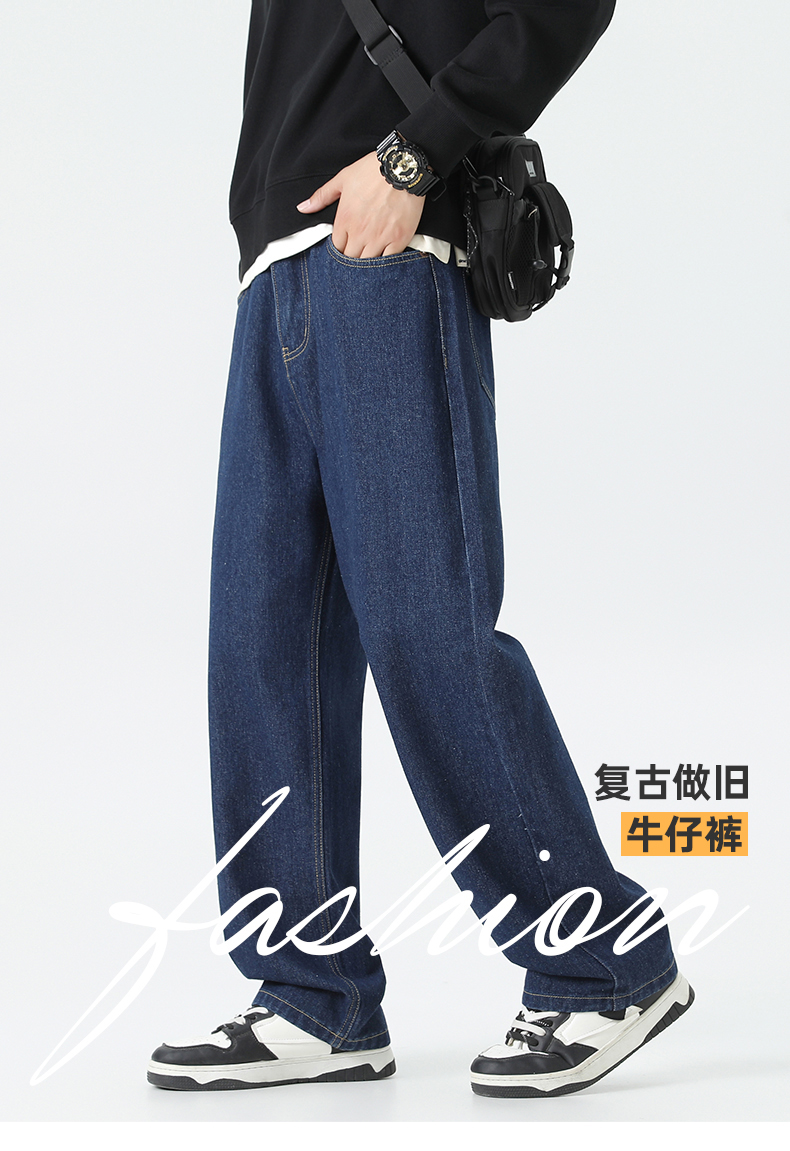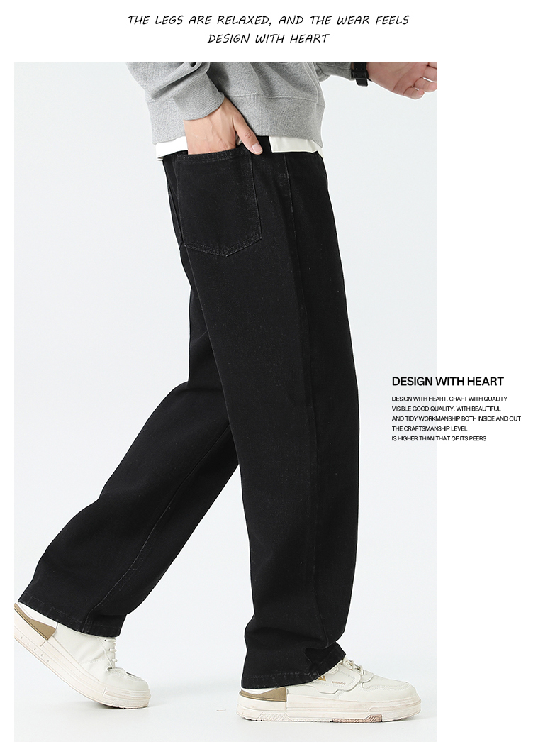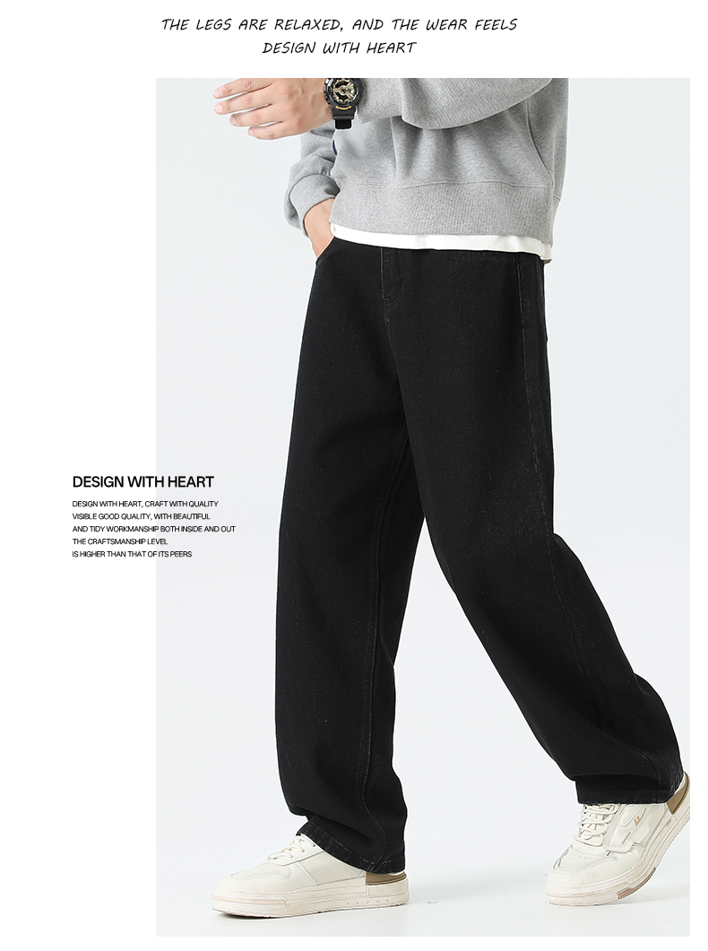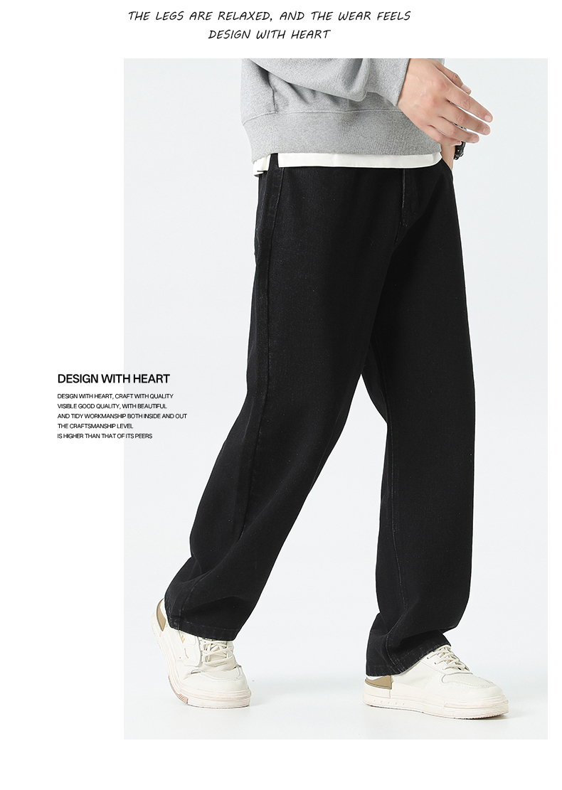 回力经典黑色牛仔裤男2025秋季新款显瘦直筒松紧腰蓝色牛仔长裤子