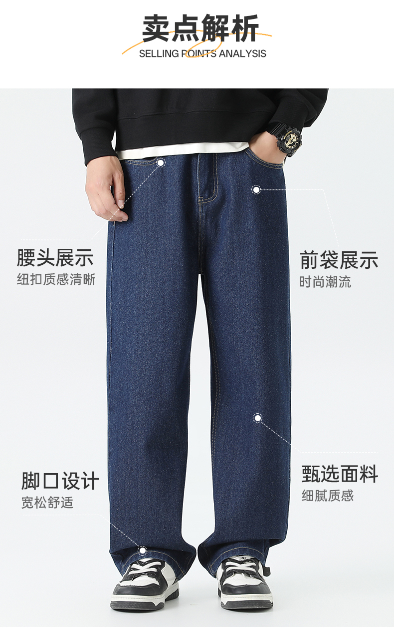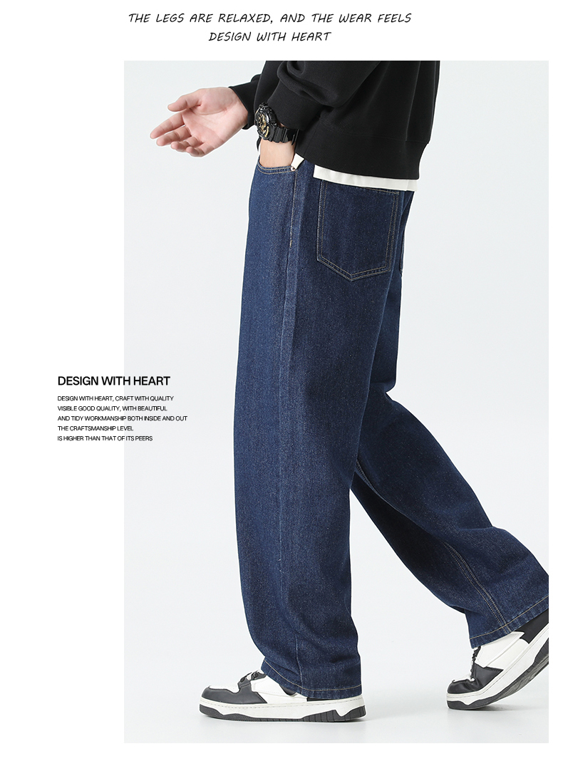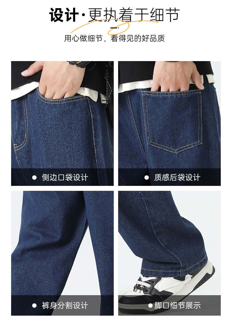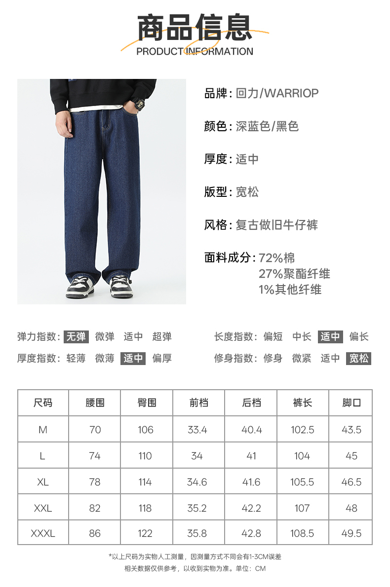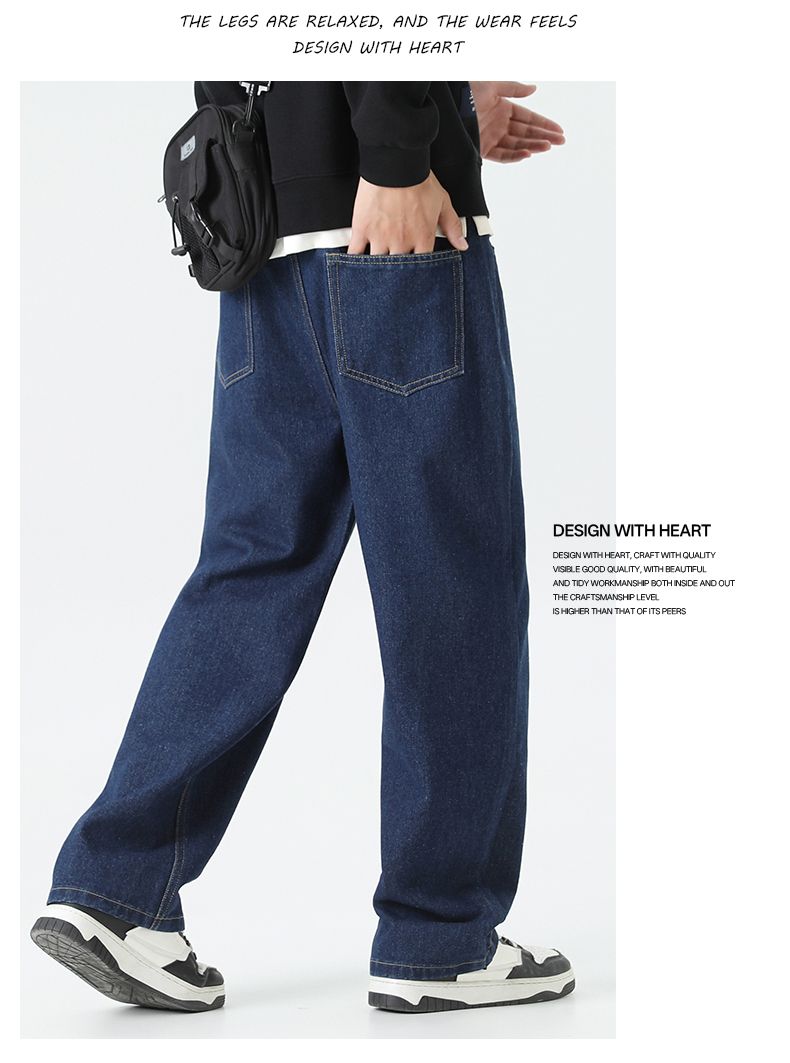 回力经典黑色牛仔裤男2025秋季新款显瘦直筒松紧腰蓝色牛仔长裤子