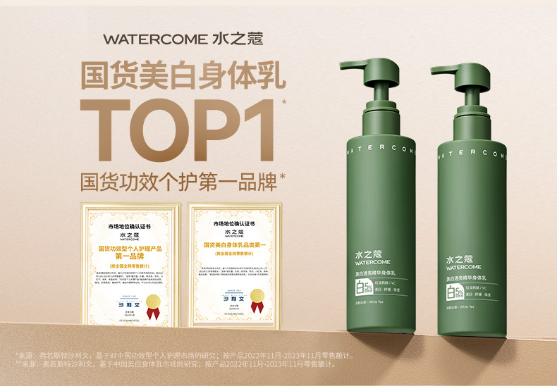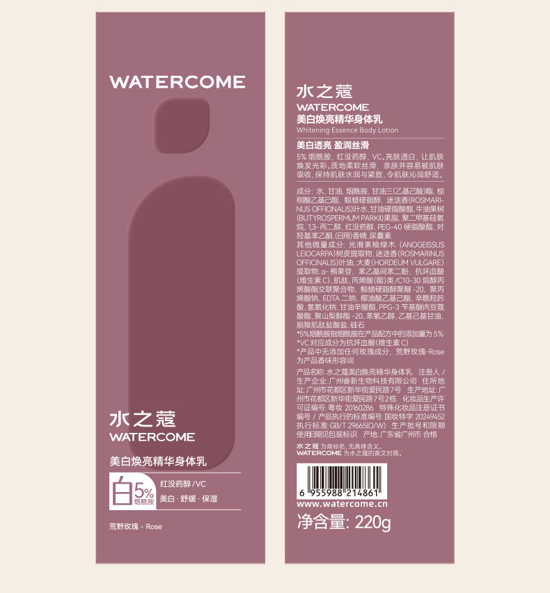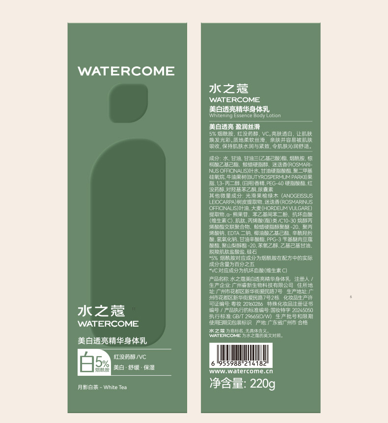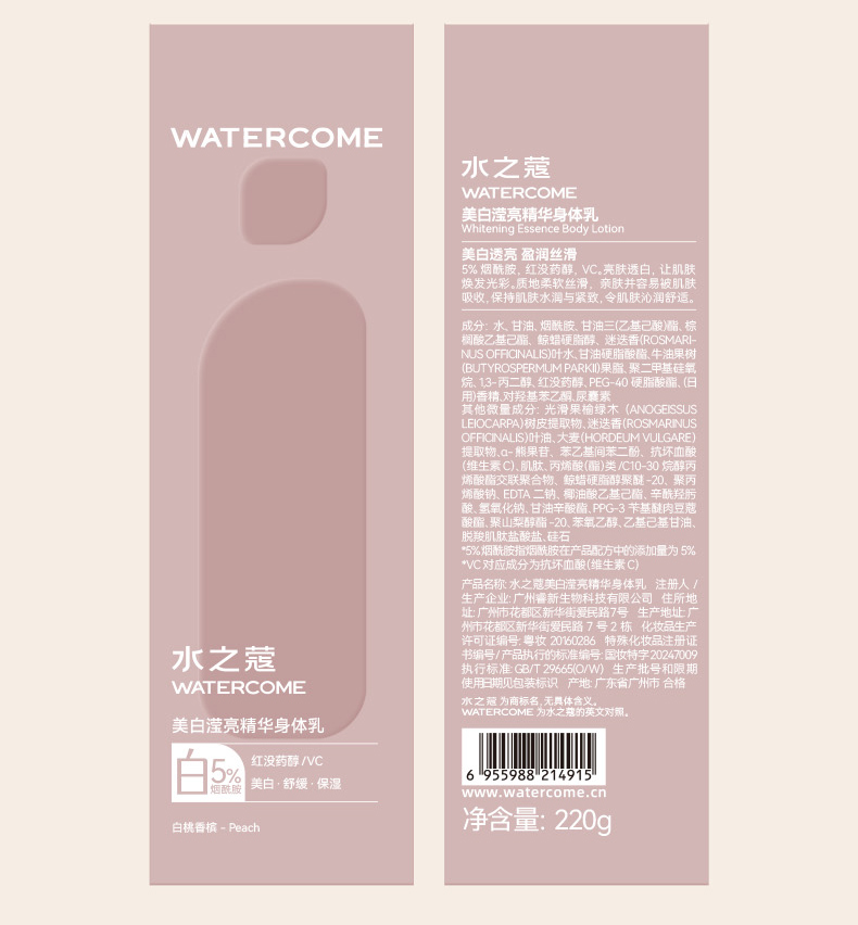 S-水之蔻24版新版美白身体乳果酸嫩肤身体乳220g*2瓶(配2支中样30g)