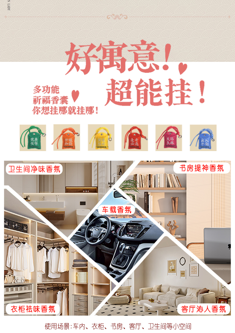 摩登红人祈福香挂车载香薰持久香氛客厅衣柜卫生间除异味香包礼物