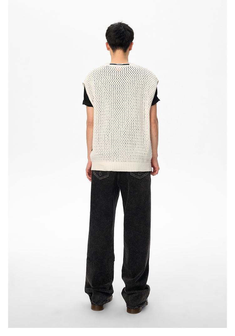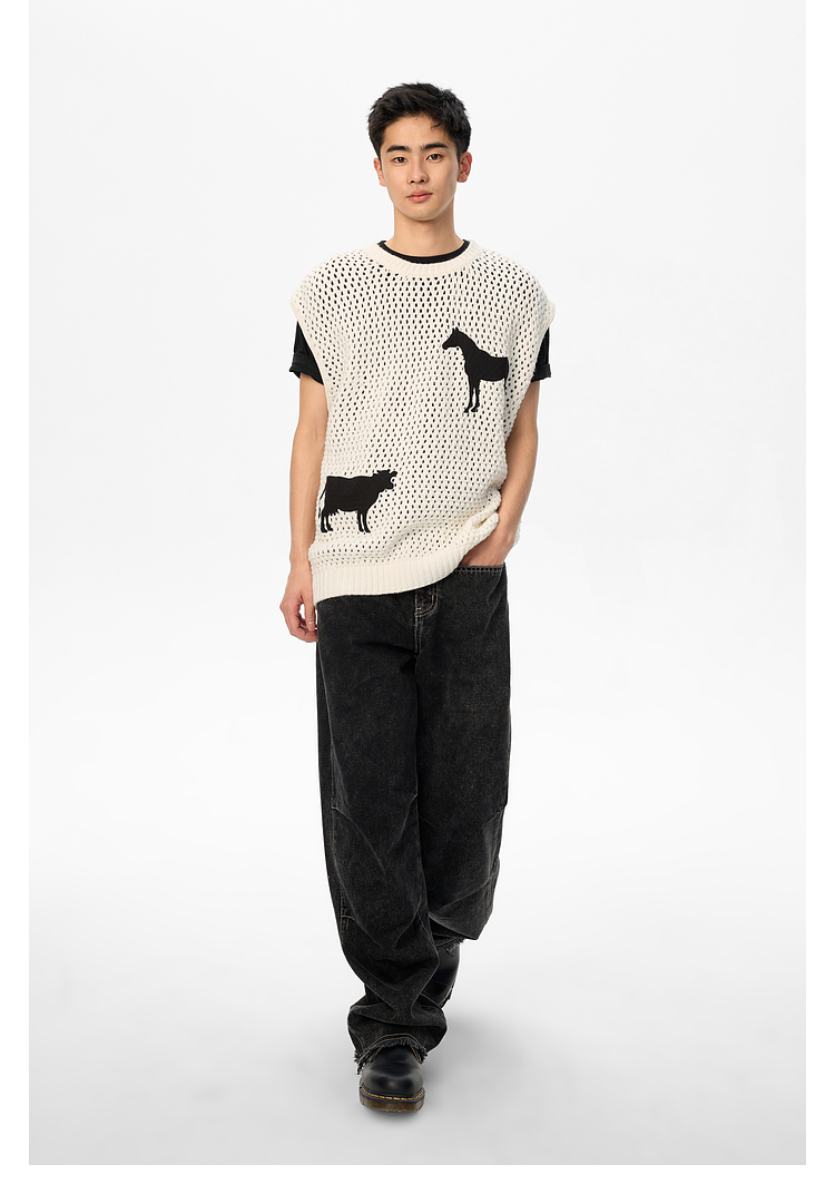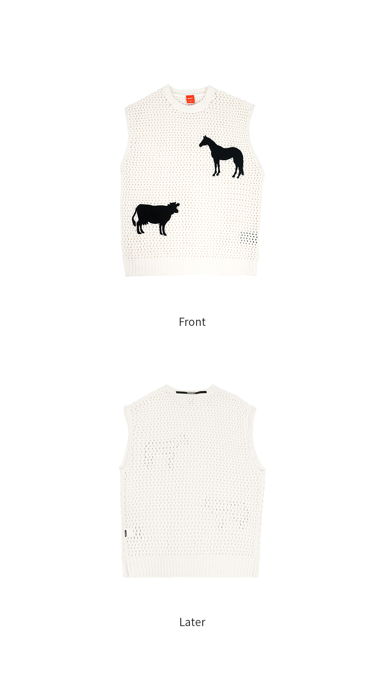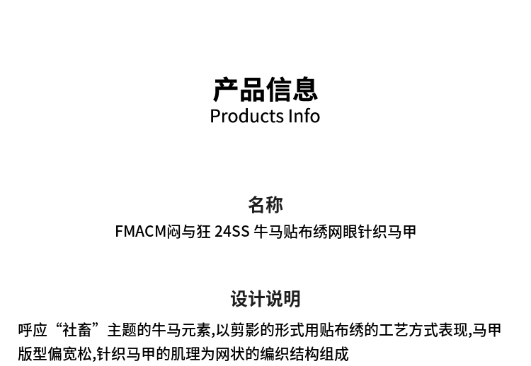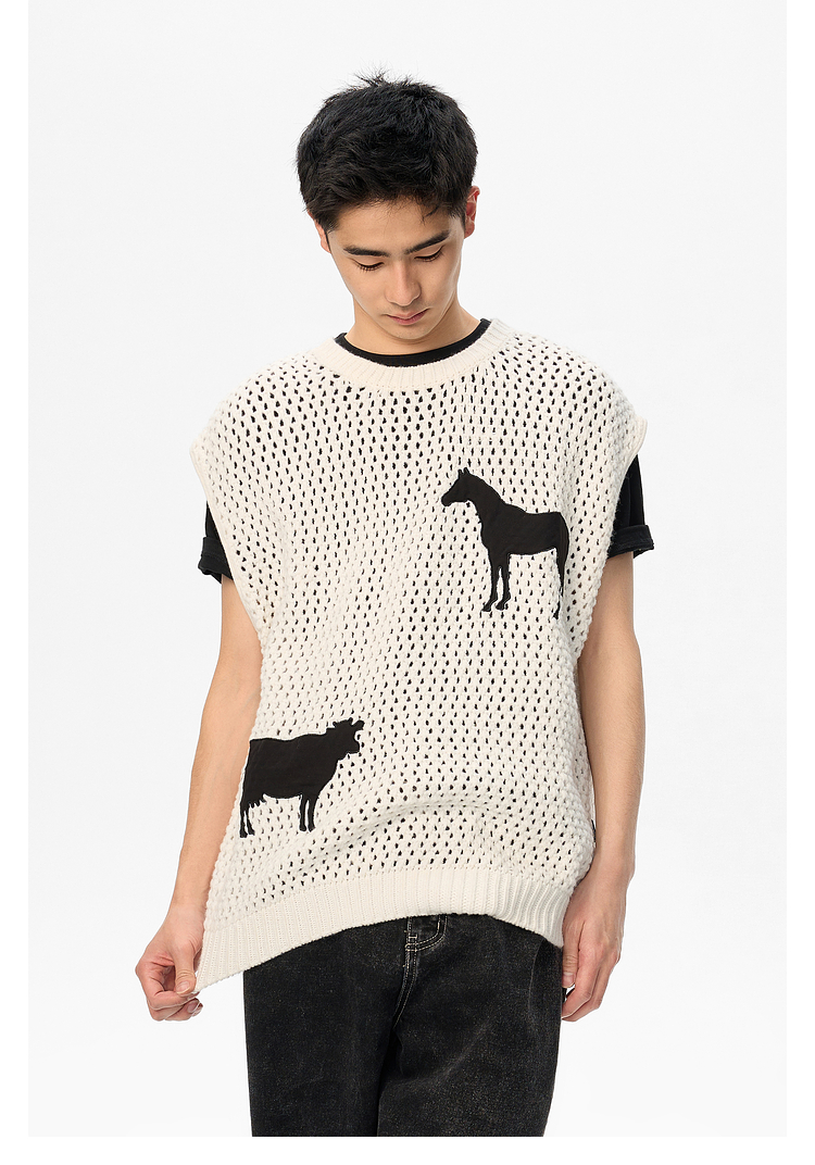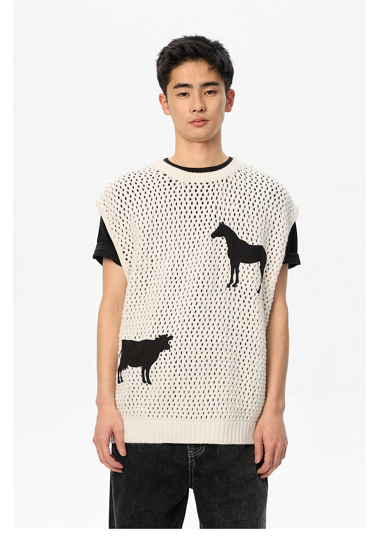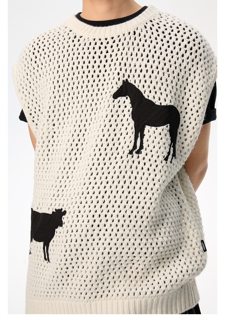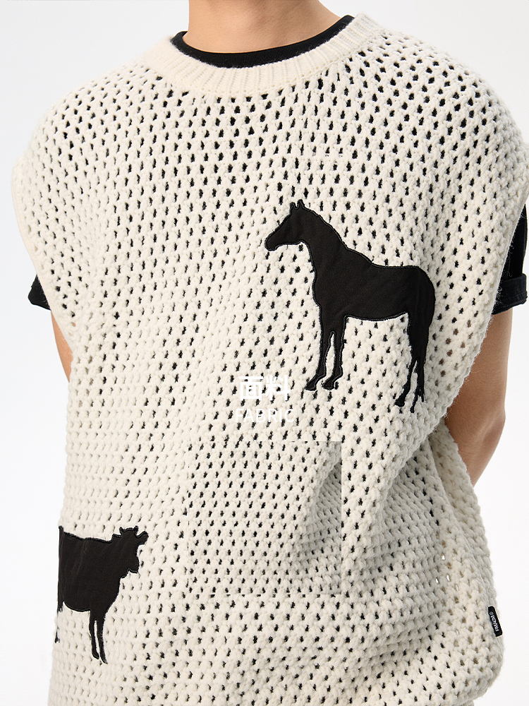 FMACM/MJ2401/牛马贴布绣网眼针织马甲